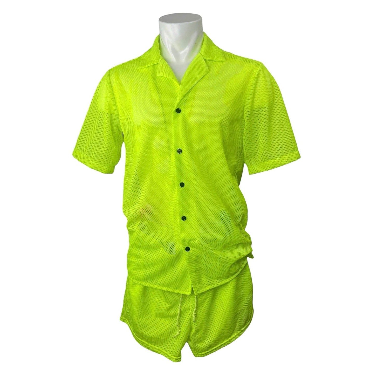 Reclaimed Vintage Neon Mesh Collared Button Down Shirt Short Tracksuit Set XS/S