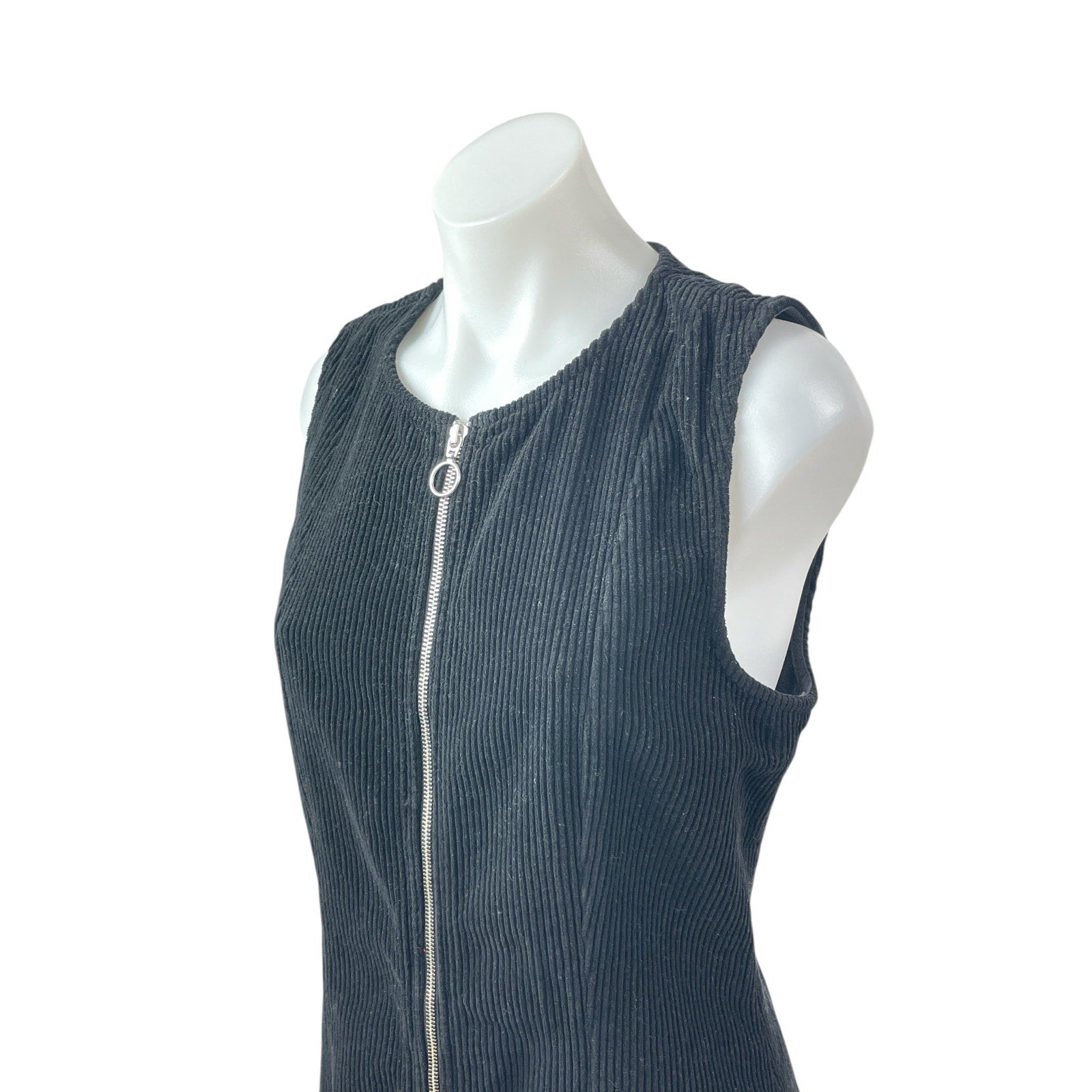 Reformation Suzie Black Corduroy Full Zip Sleeveless Belted A Line Mini Dress 8