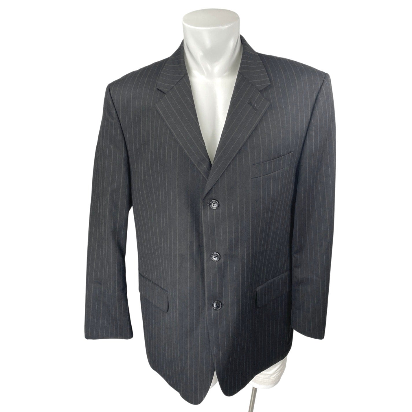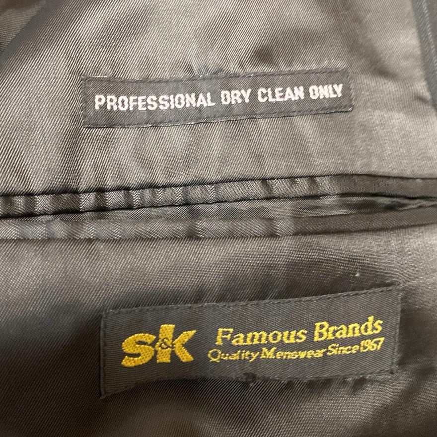 S&K Men's Black 100% Wool Pinstriped Long Sleeve Blazer Coat Suit Jacket Size 46