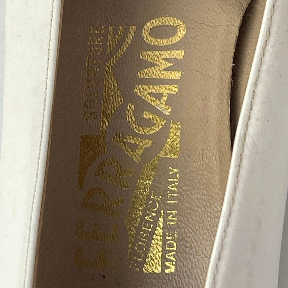 Salvatore Ferragamo White Color Block Leather Block Heels Slip On Pump Shoes 5.5