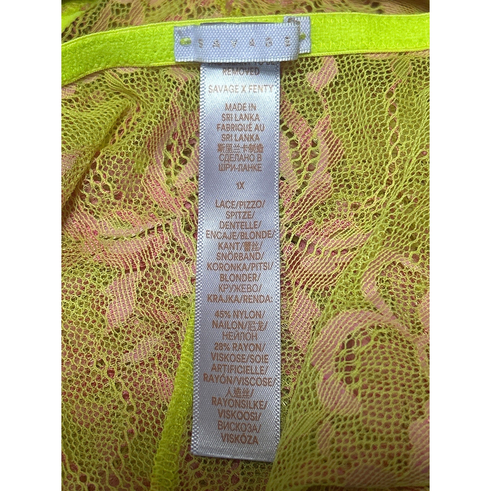 Savage x Fenty Yellow Pink Lace Brallete High Waist Bottom Lingerie 2 Pc Set 1XL