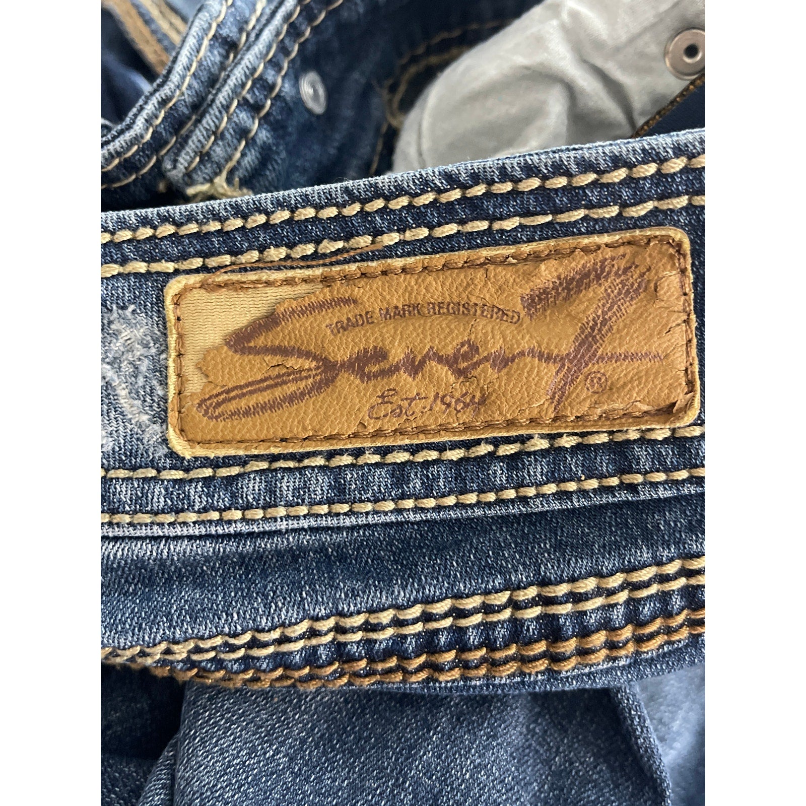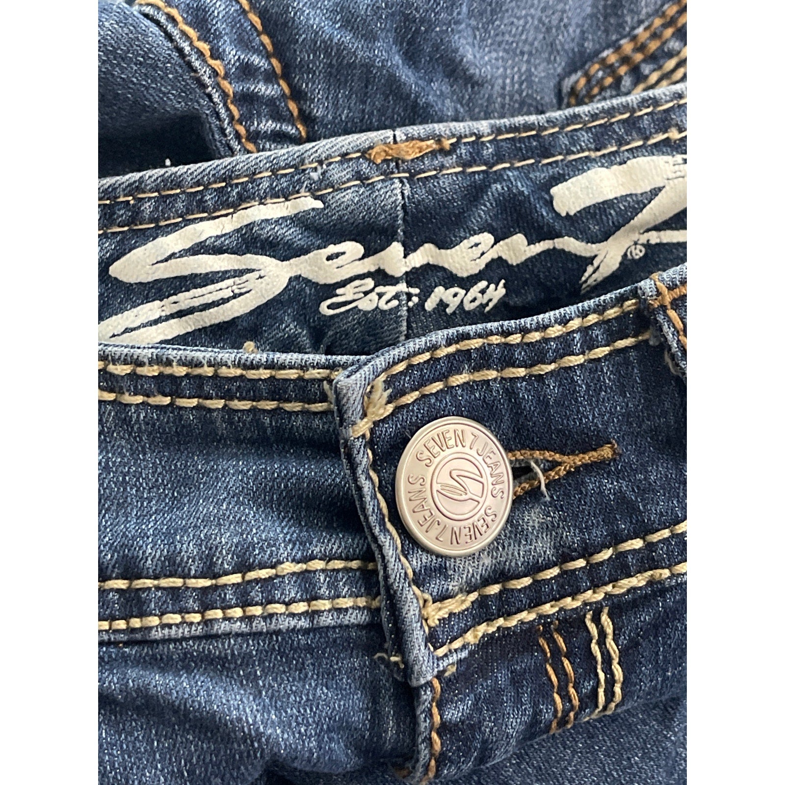 Seven7 Women's Blue Distressed Mid Rise Ripped Bootcut Denim Jeans Pants Size 27