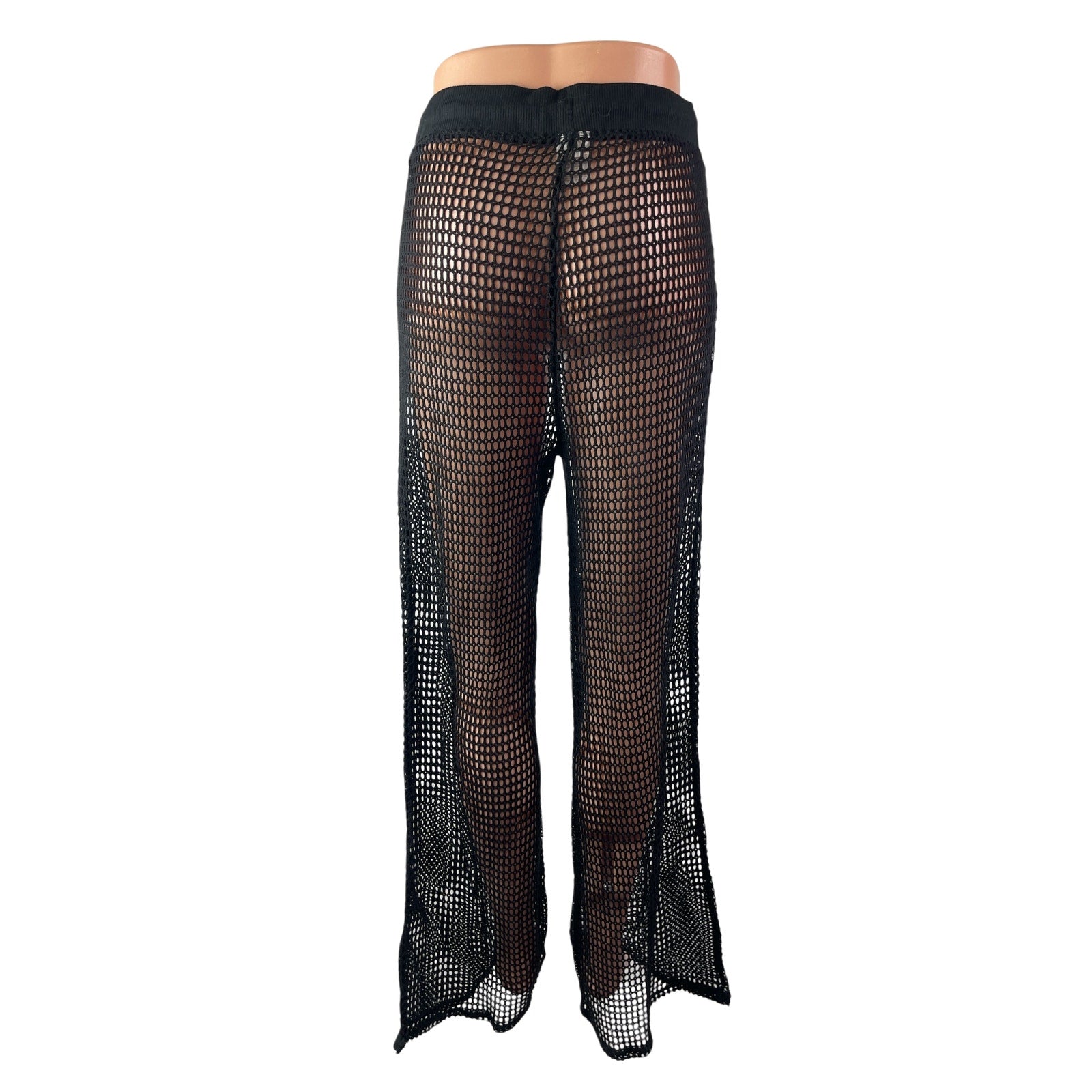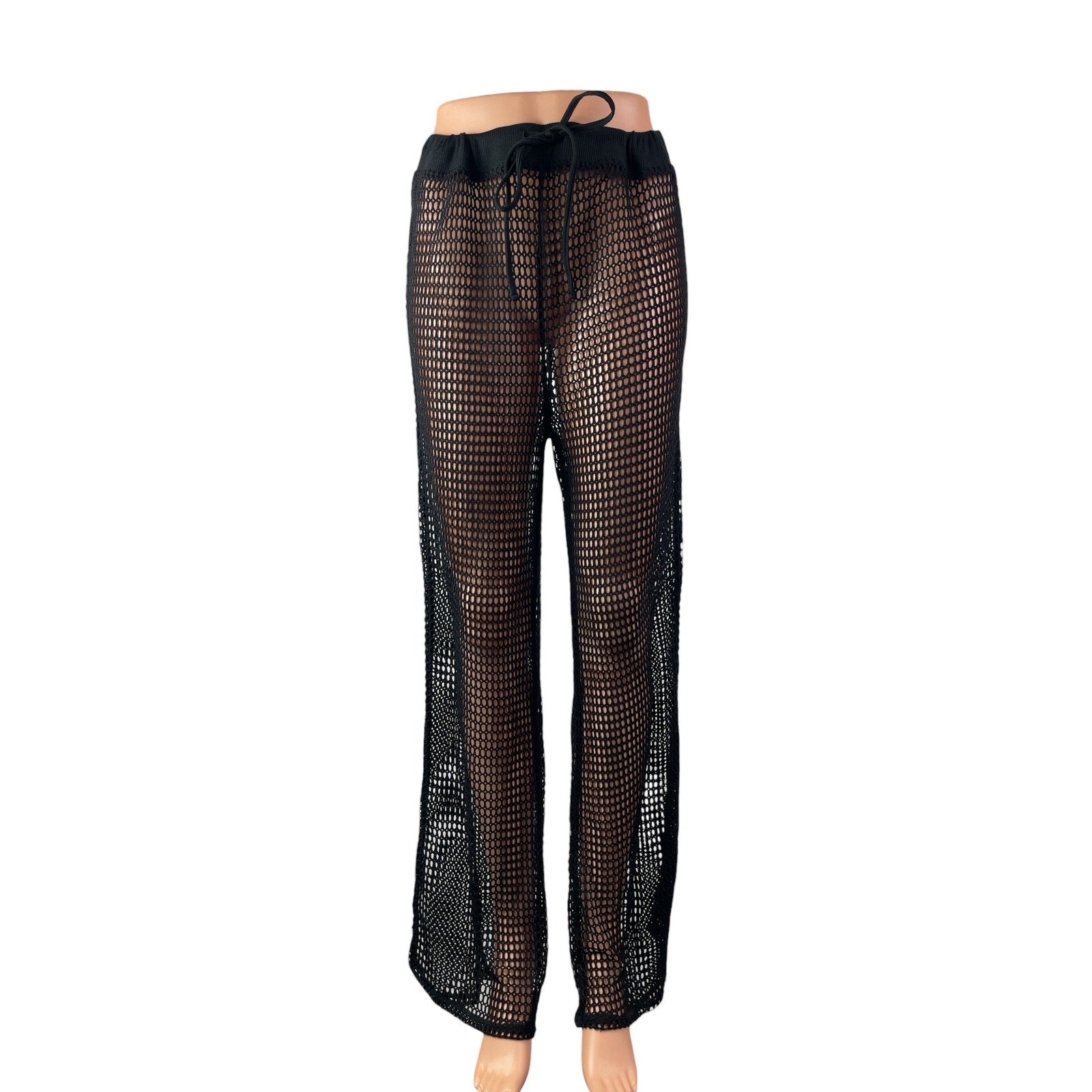 Shade & Shore Women's Black Mesh Sheer Crochet High Rise Beach Cover Up Pants M