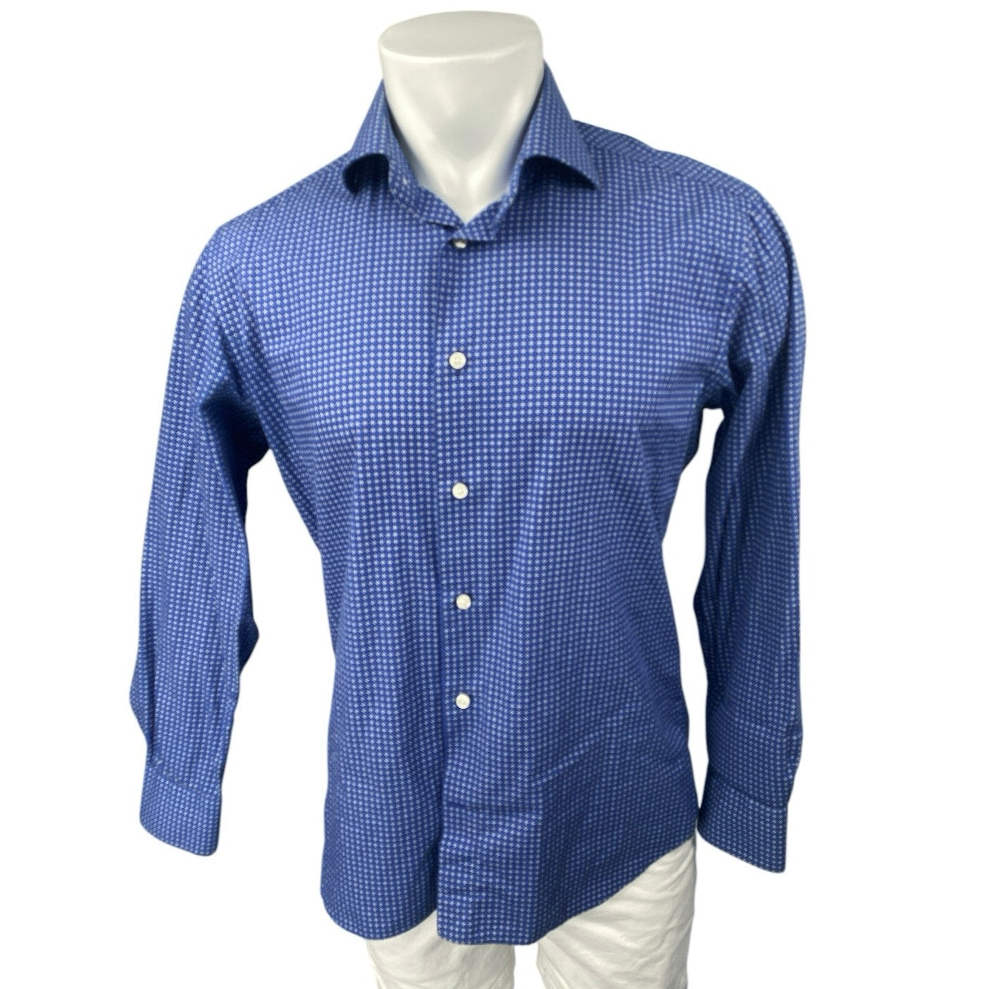 Stellante Men's Blue Printed Long Sleeve Collar Button Down Slim Shirt Top Size 16