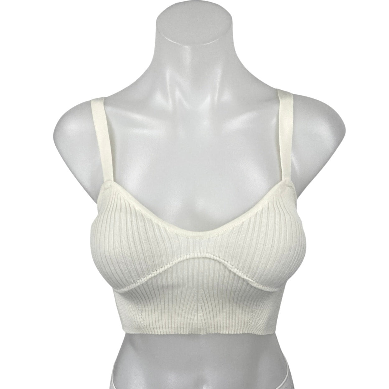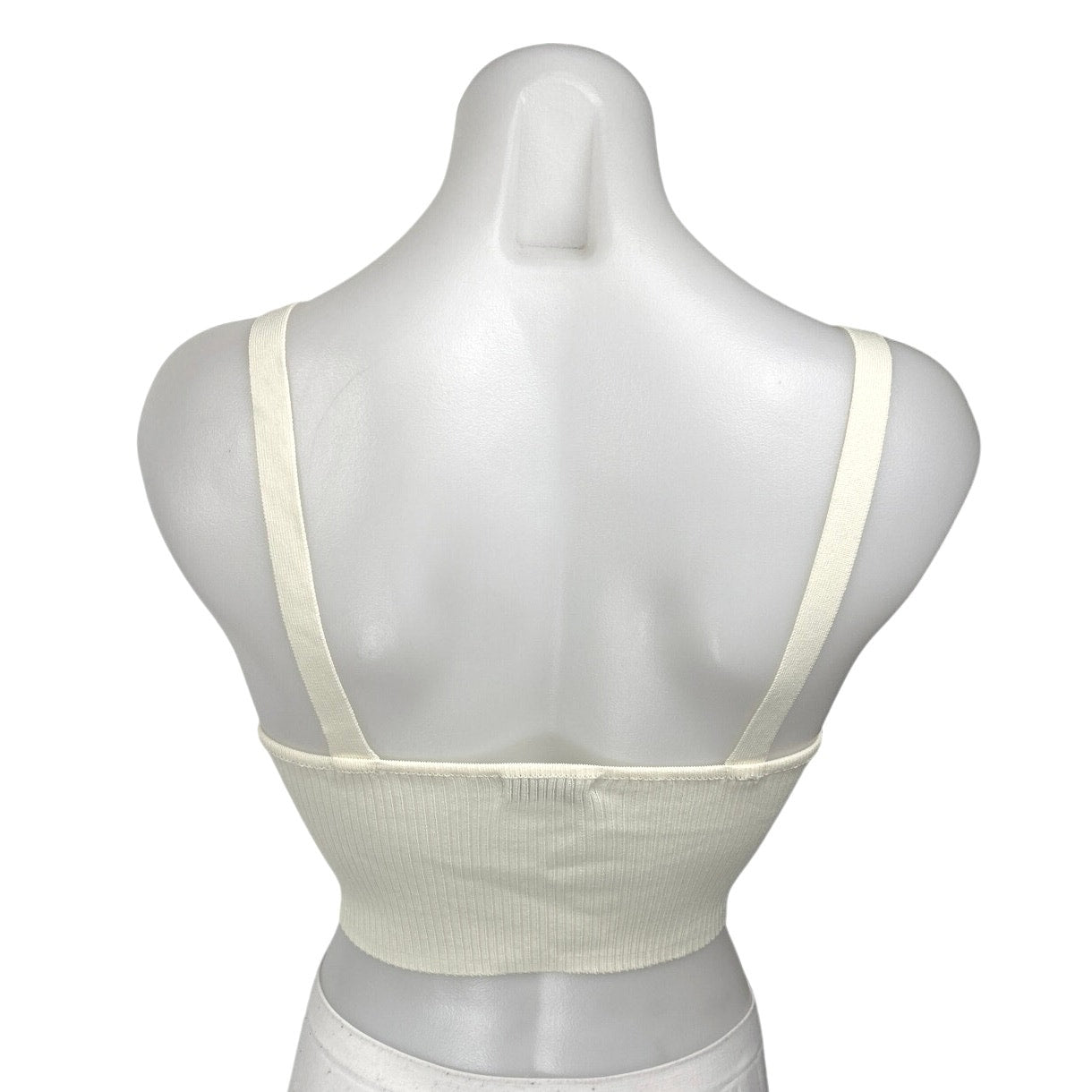 Stradivarius Cream Ribbed Knit Sculpt Sleeveless Cami Camisole Tank Crop Top XS