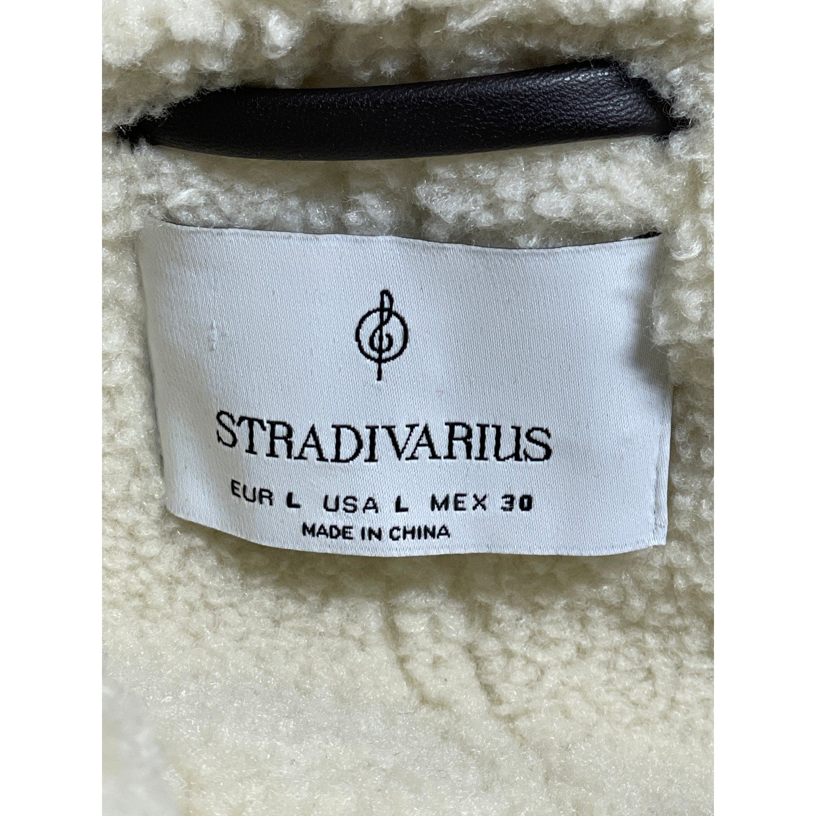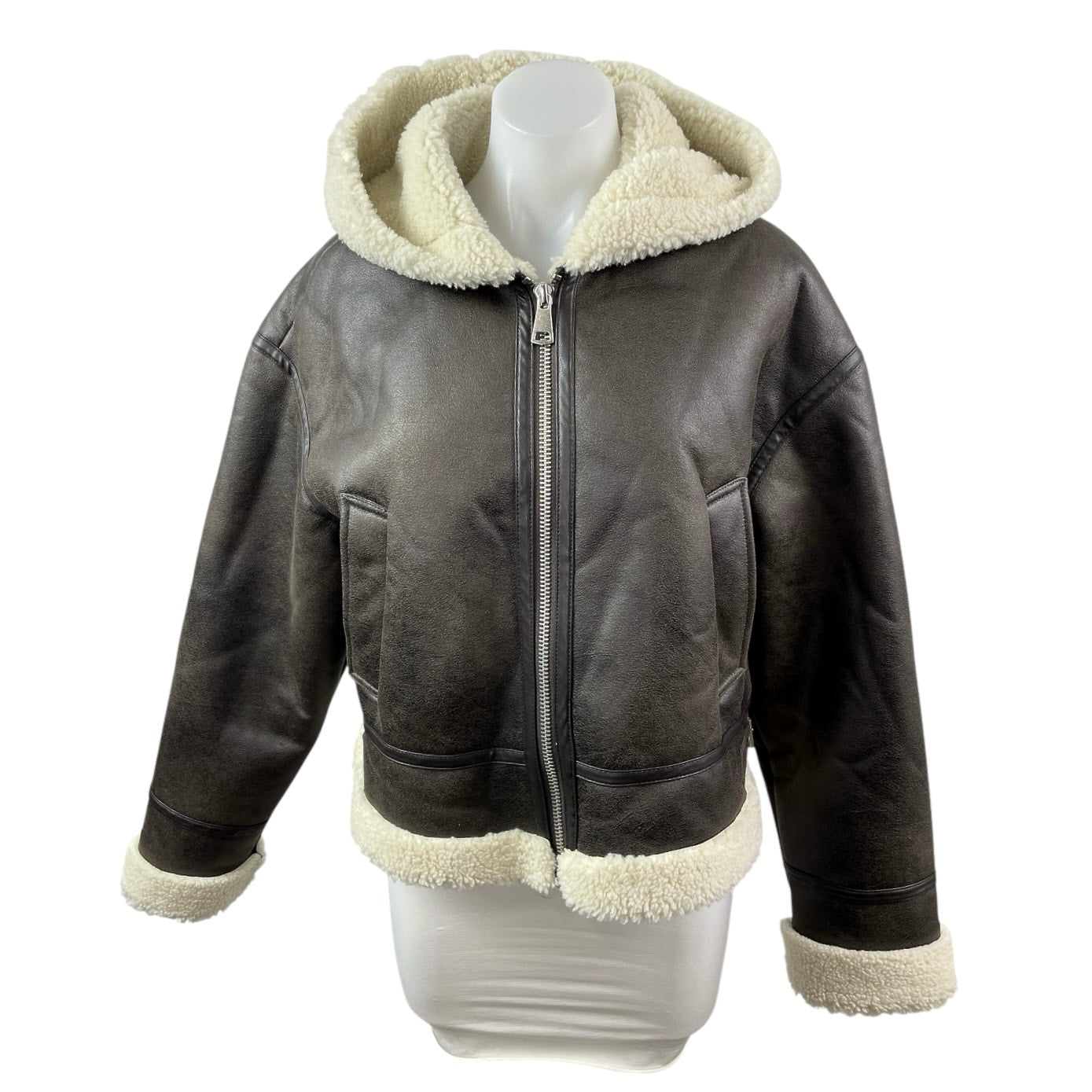 Stradivarius Women's Brown Fleece Sherpa Hoodie Full Zip Faux Leather Jacket L