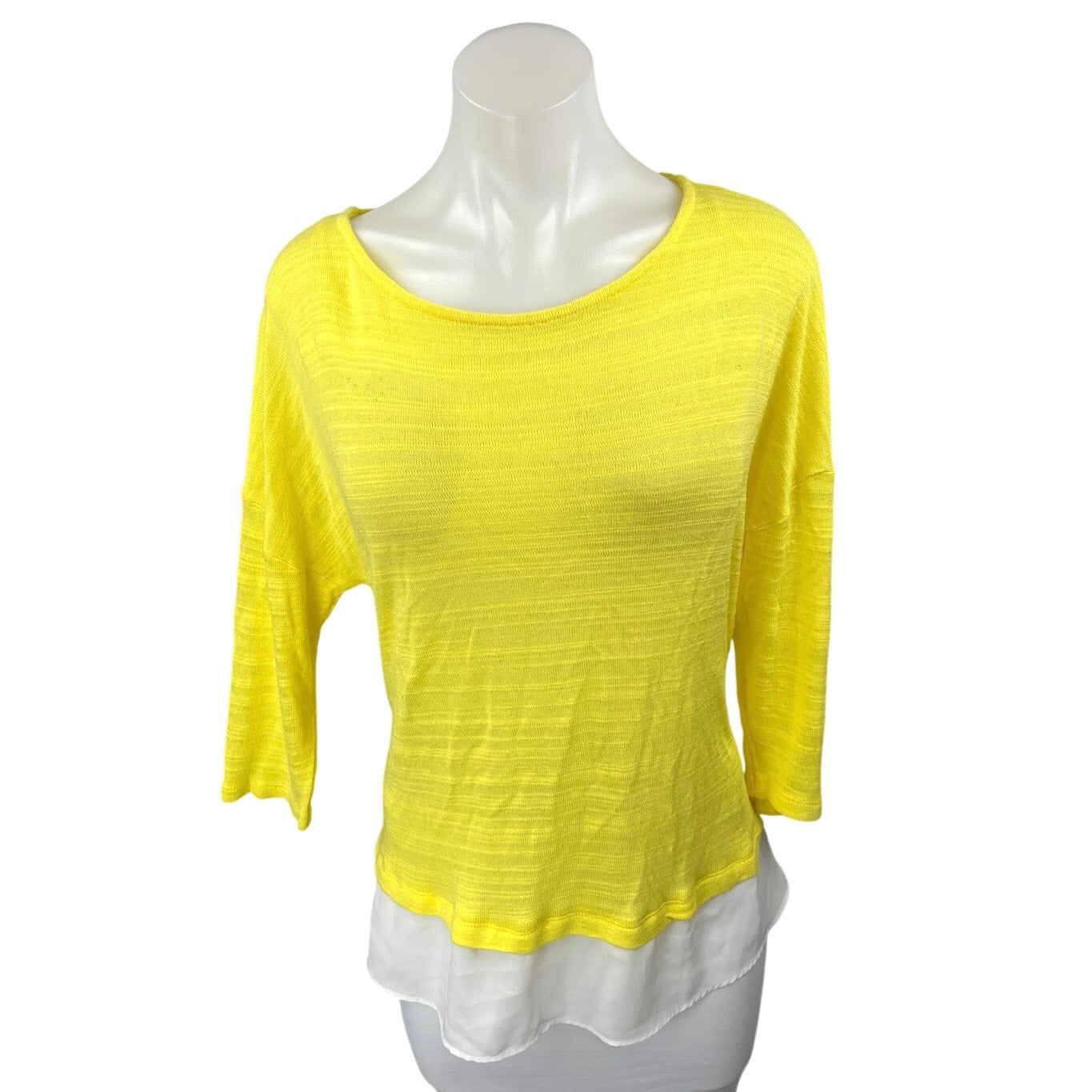 Stradivarius Yellow White Half Sleeve Layered Colorblock T Shirt Tee Top Size L