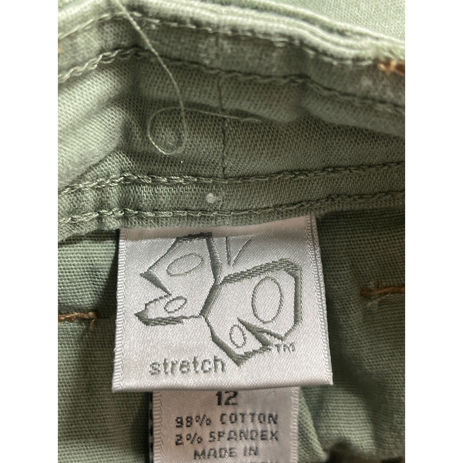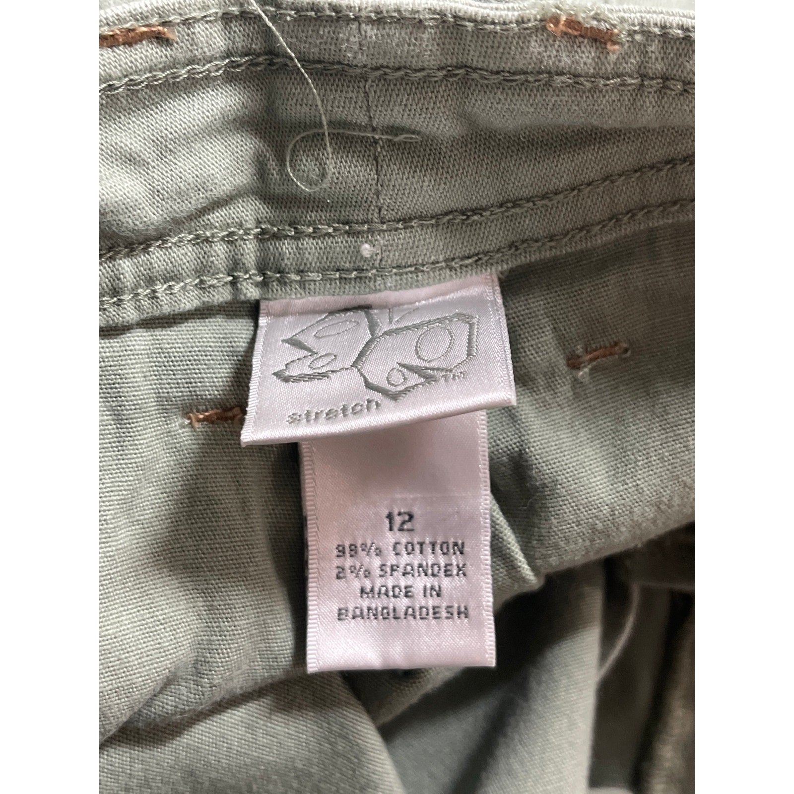 Stretch Women's Olive Green High Waisted Mini Utility Cargo Denim Skort Skirt 12
