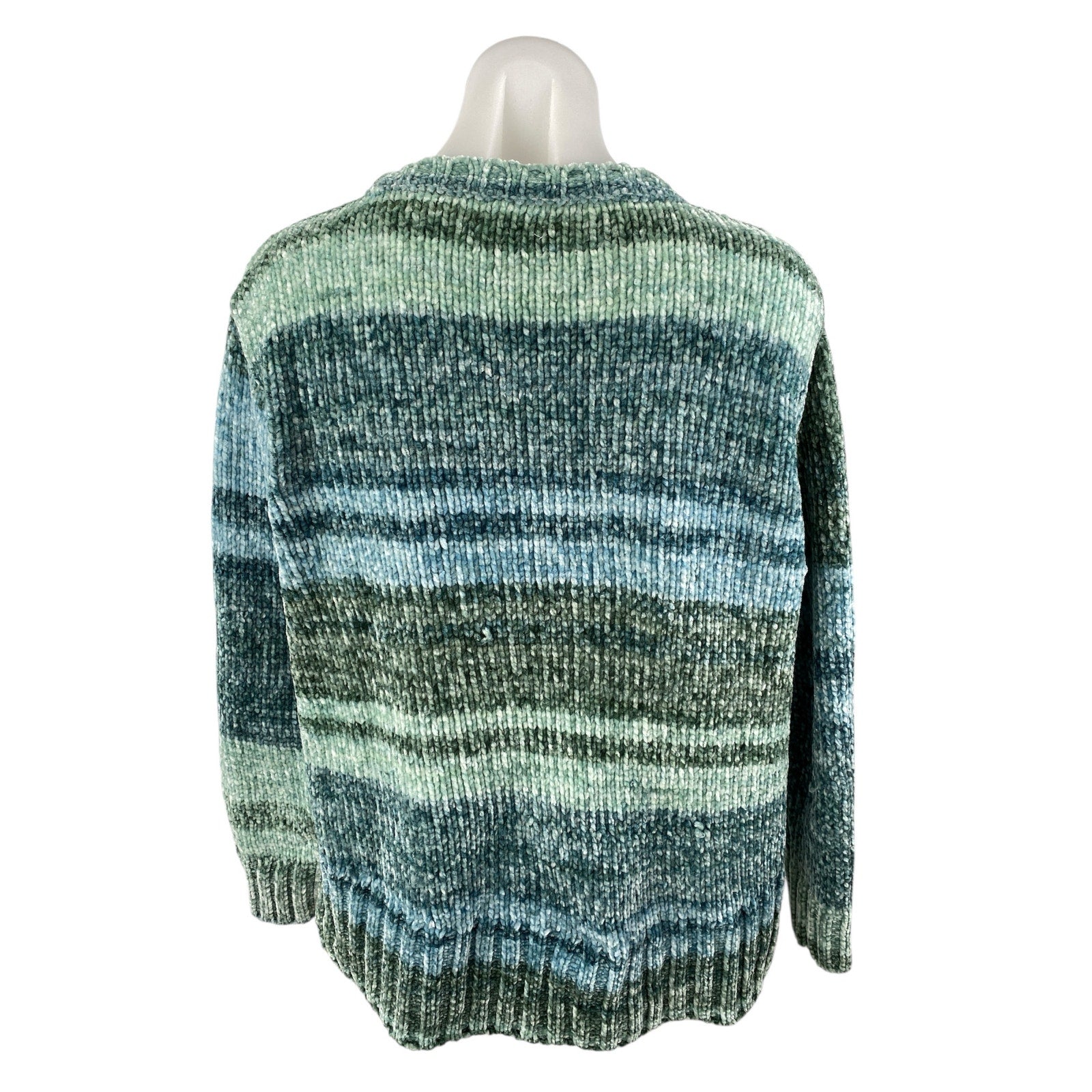 Style & Co Woemn's Green Striped Knit Crewneck Long Sleeve Knit Sweater Top Size S