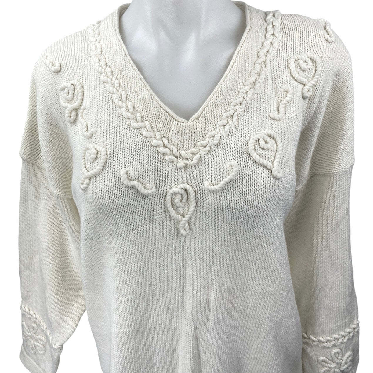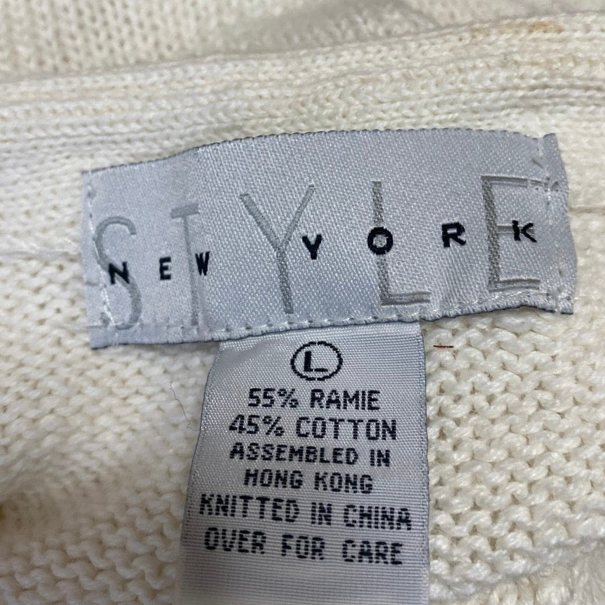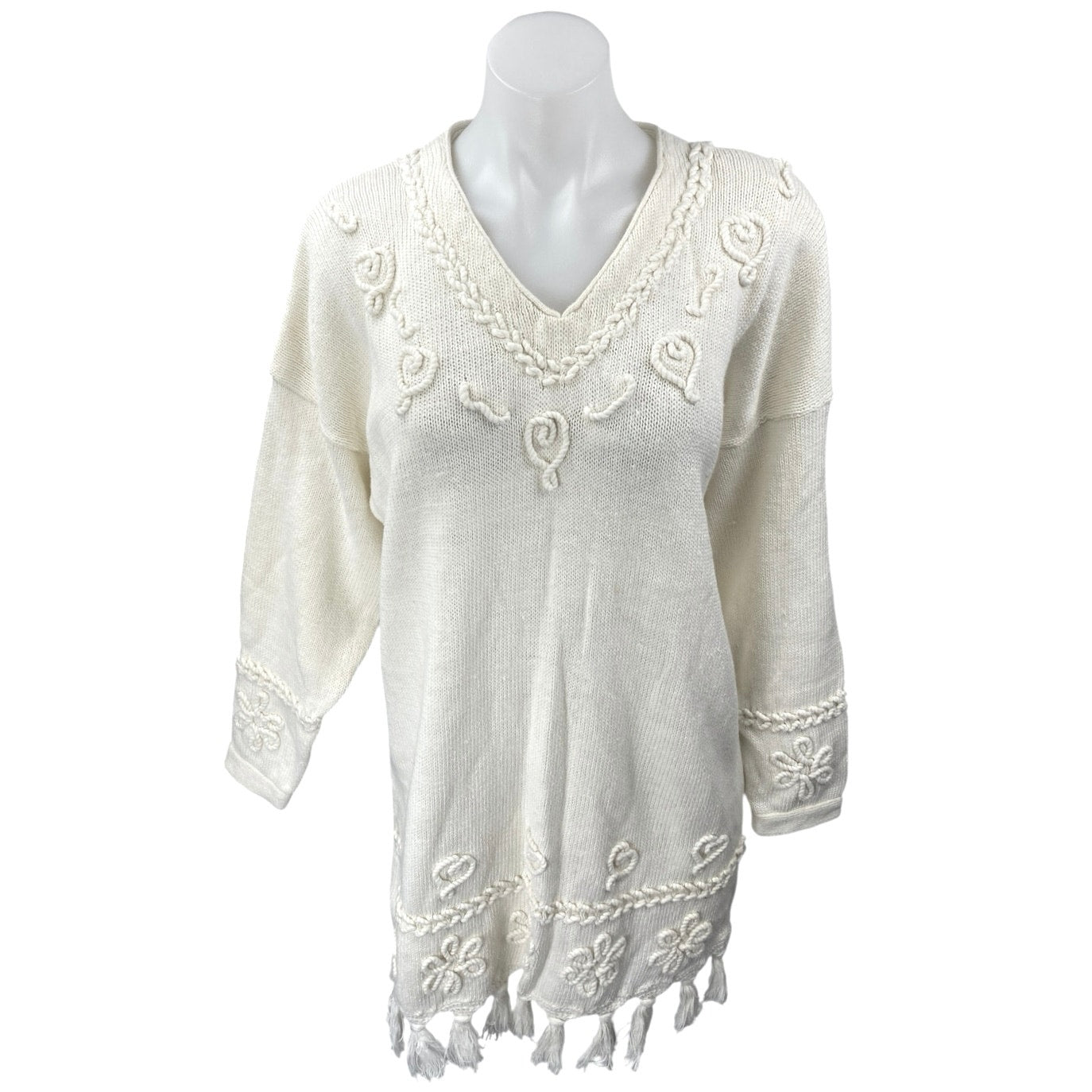 Style New York Cream Long Sleeve 3D V Neck Tassel Mini Sweater Dress Size L