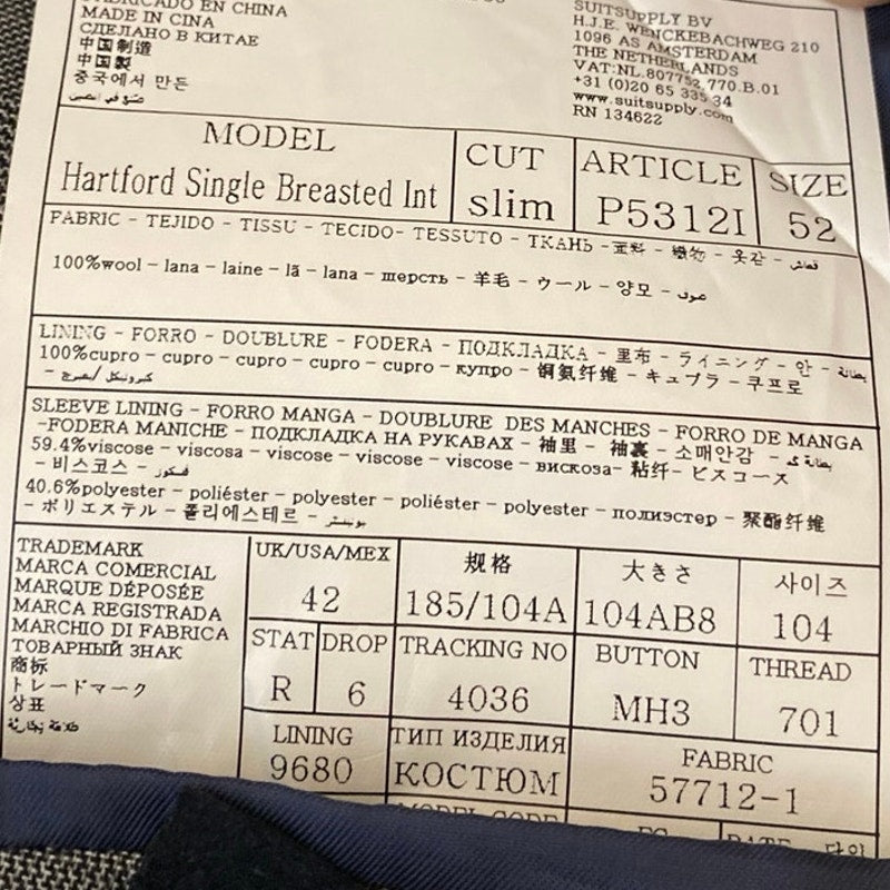 Suit Supply 100% Wool Men's Gray Long Sleeve Button Blazer Coat Suit Jacket 42