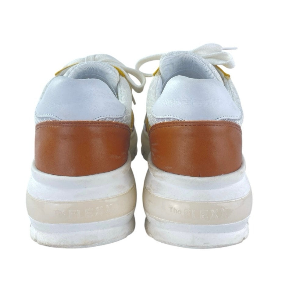 The Flexx Women's Yellow Brown Leather Mesh Low Top Athletic Sneakers Shoes Size 37/US6.5- 7