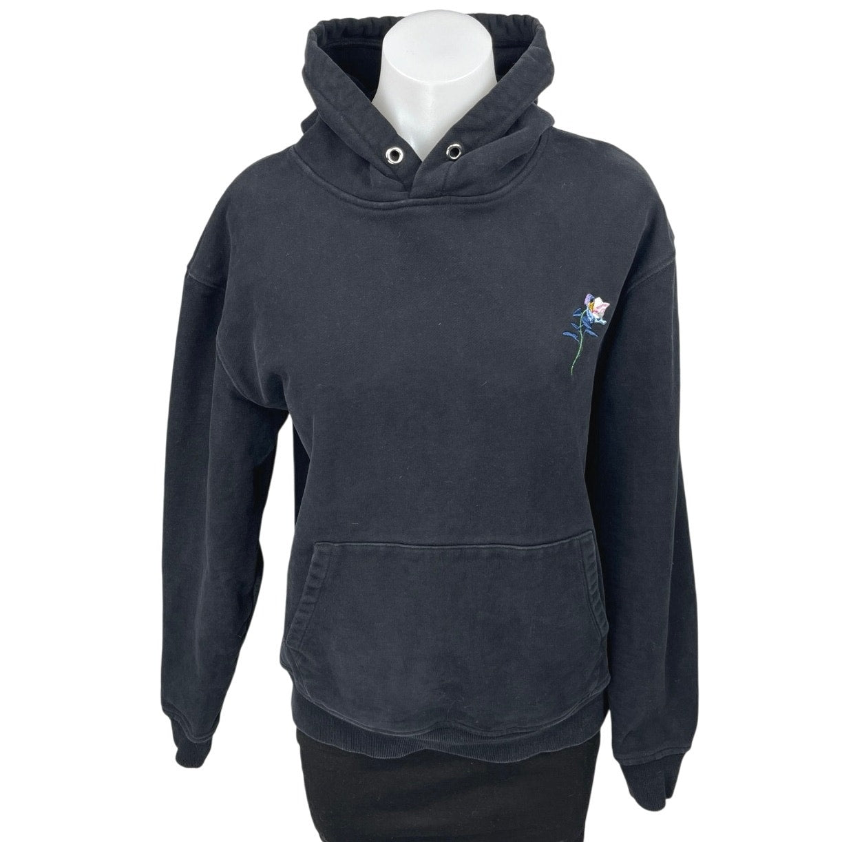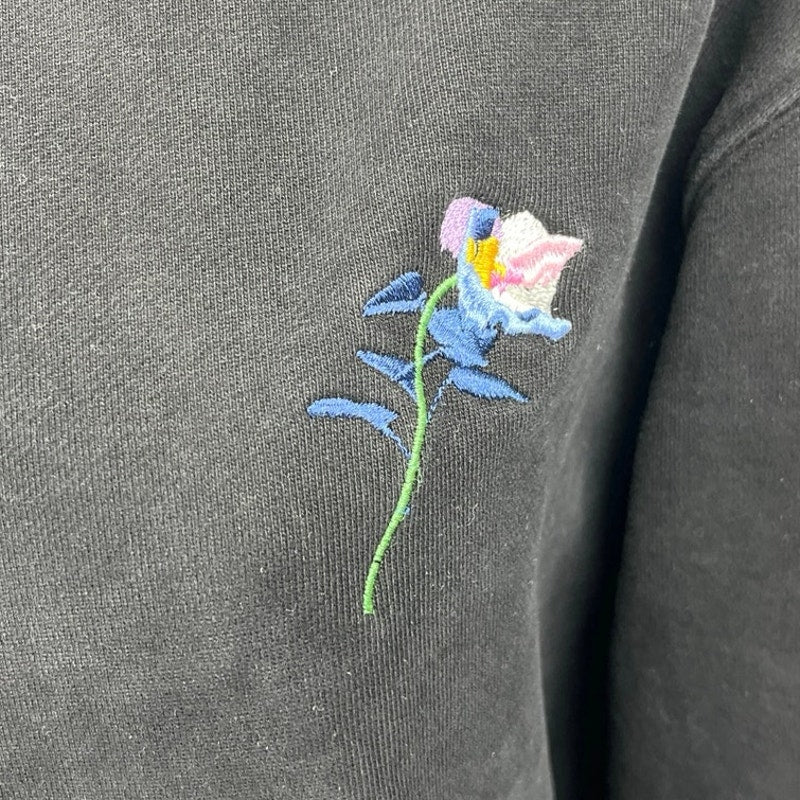 The Kooples Women's Black Embroidered Flower Long Sleeve Hoodie Hooded Sweatshirt Top Size S