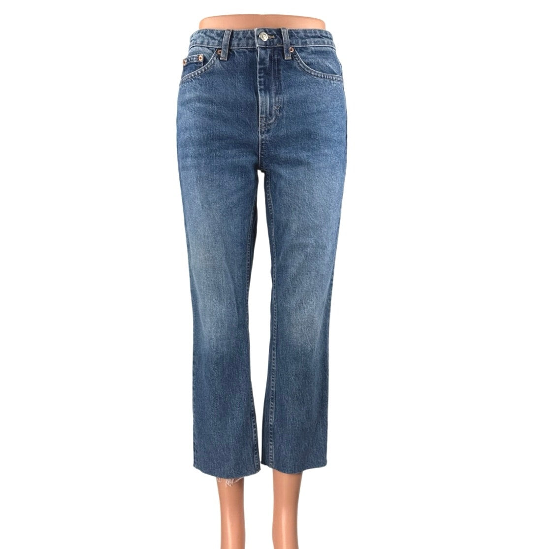 Topshop Women's Blue High Waisted Flared Bootcut Cropped Denim Jeans Size 25