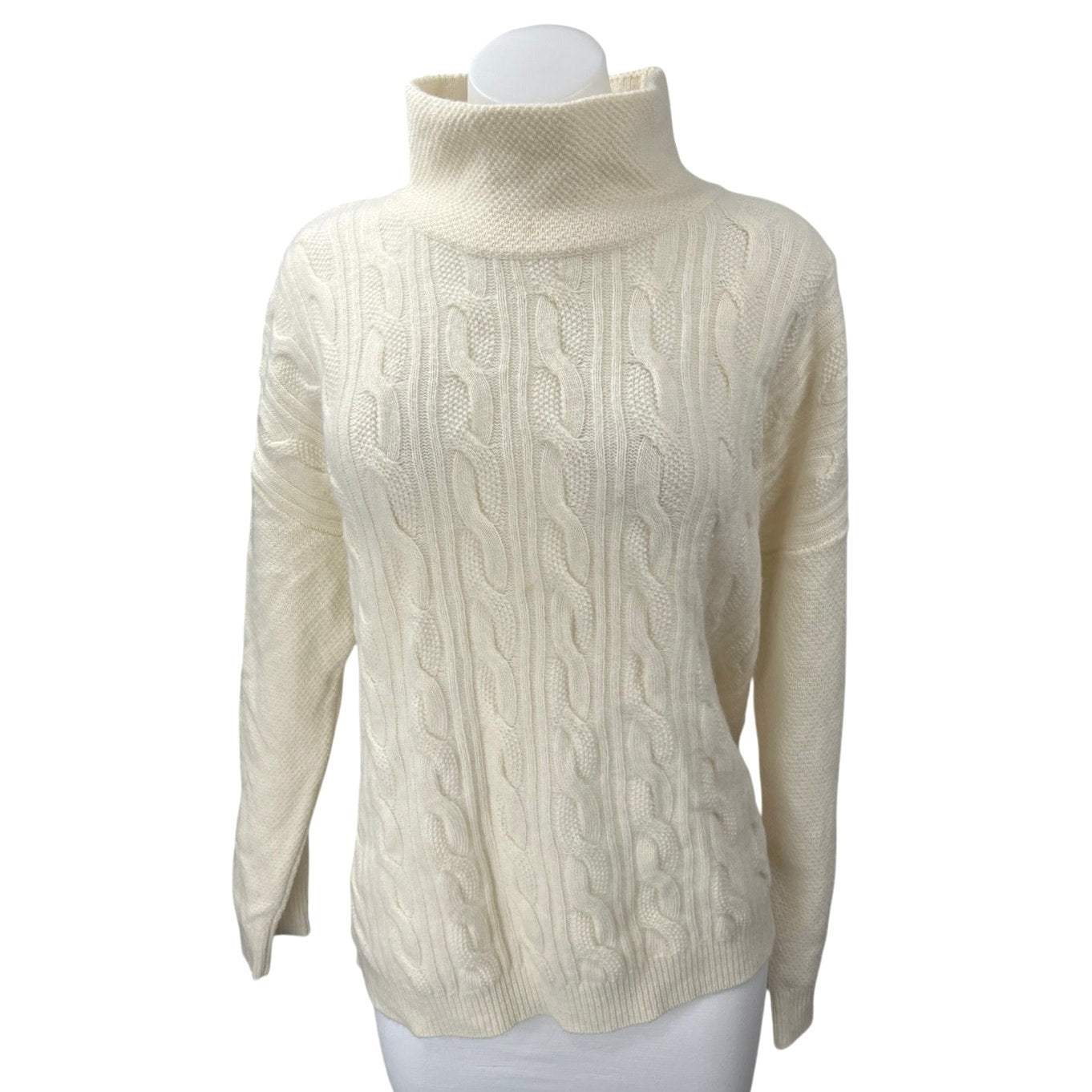 Trenery Merino Wool Cashmere Cream Cable Knit Turtleneck Pullover Sweater Top L