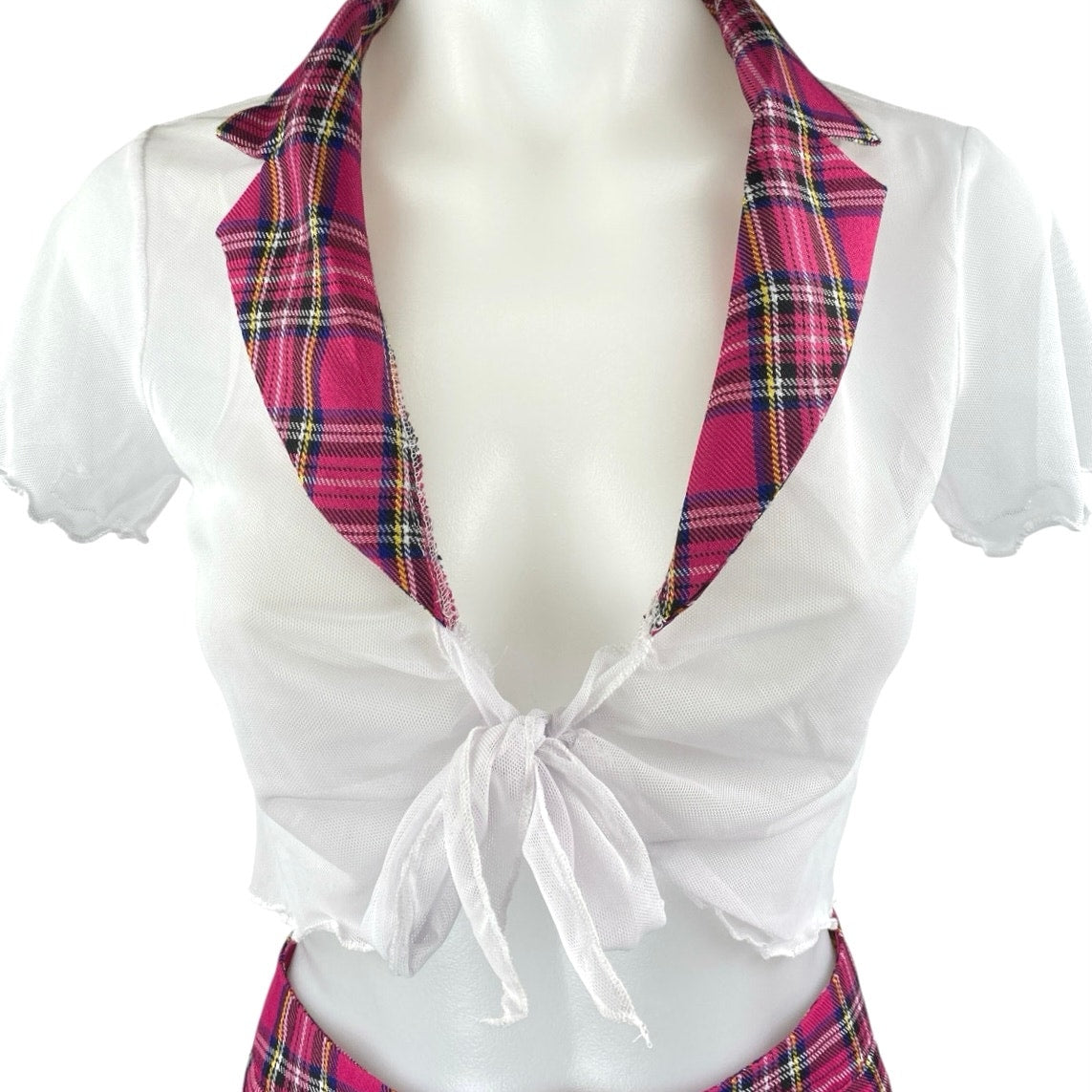 Trickz N' Treatz White Pink 2-Piece Plaid Sexy Schoolgirl Uniform Costume Costplay Set M
