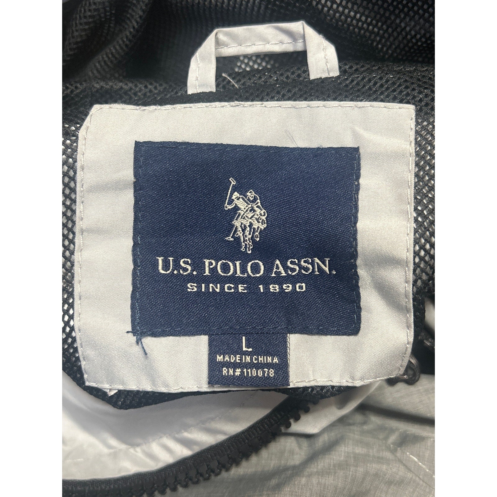 U.S. Polo Assn Men's Gray Black Colorblock Hoodie Hooded Windbreaker Jacket L