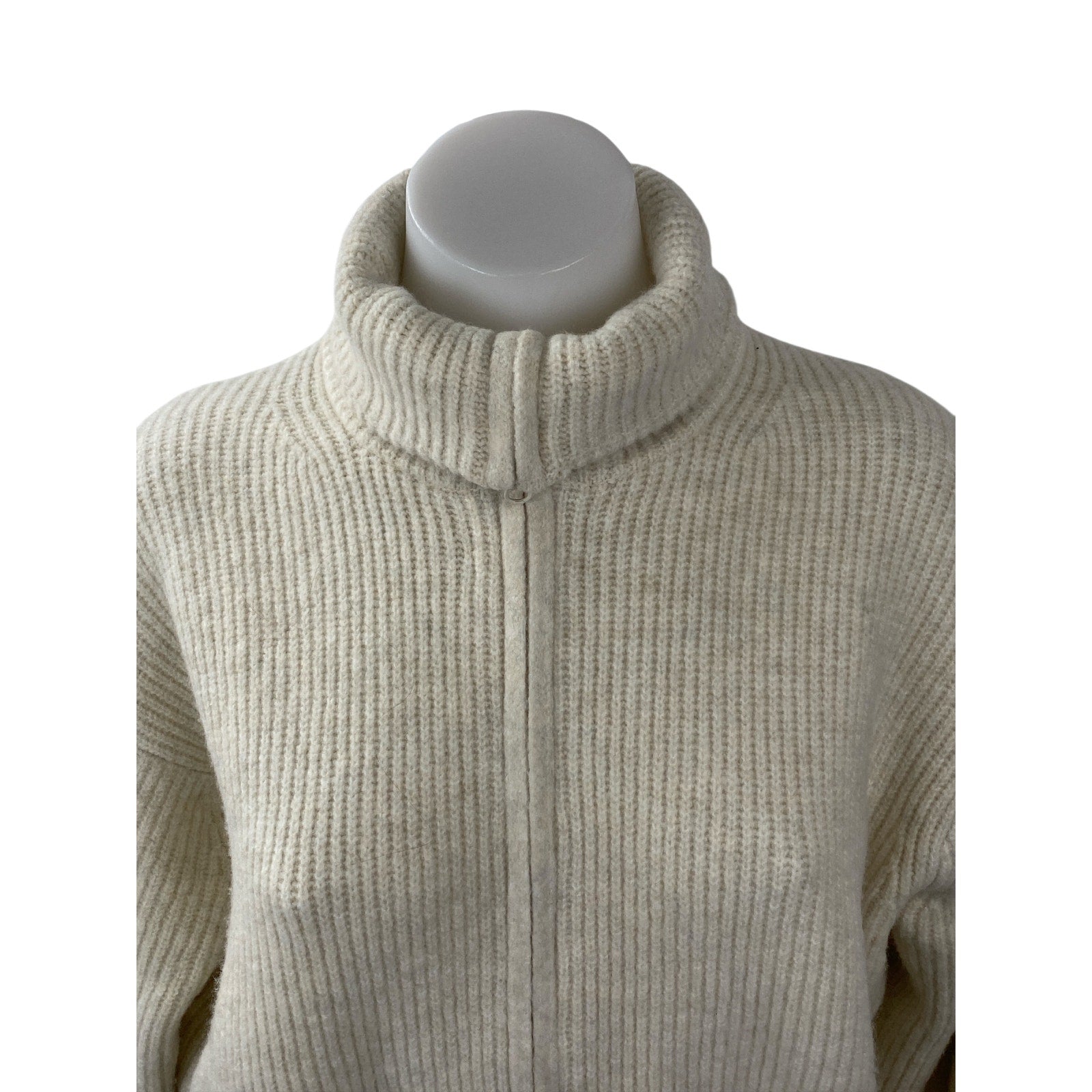 Uniqlo Women's Beige Ribbed Knit Long Sleeve Full Zip Turtleneck Sweater Top S