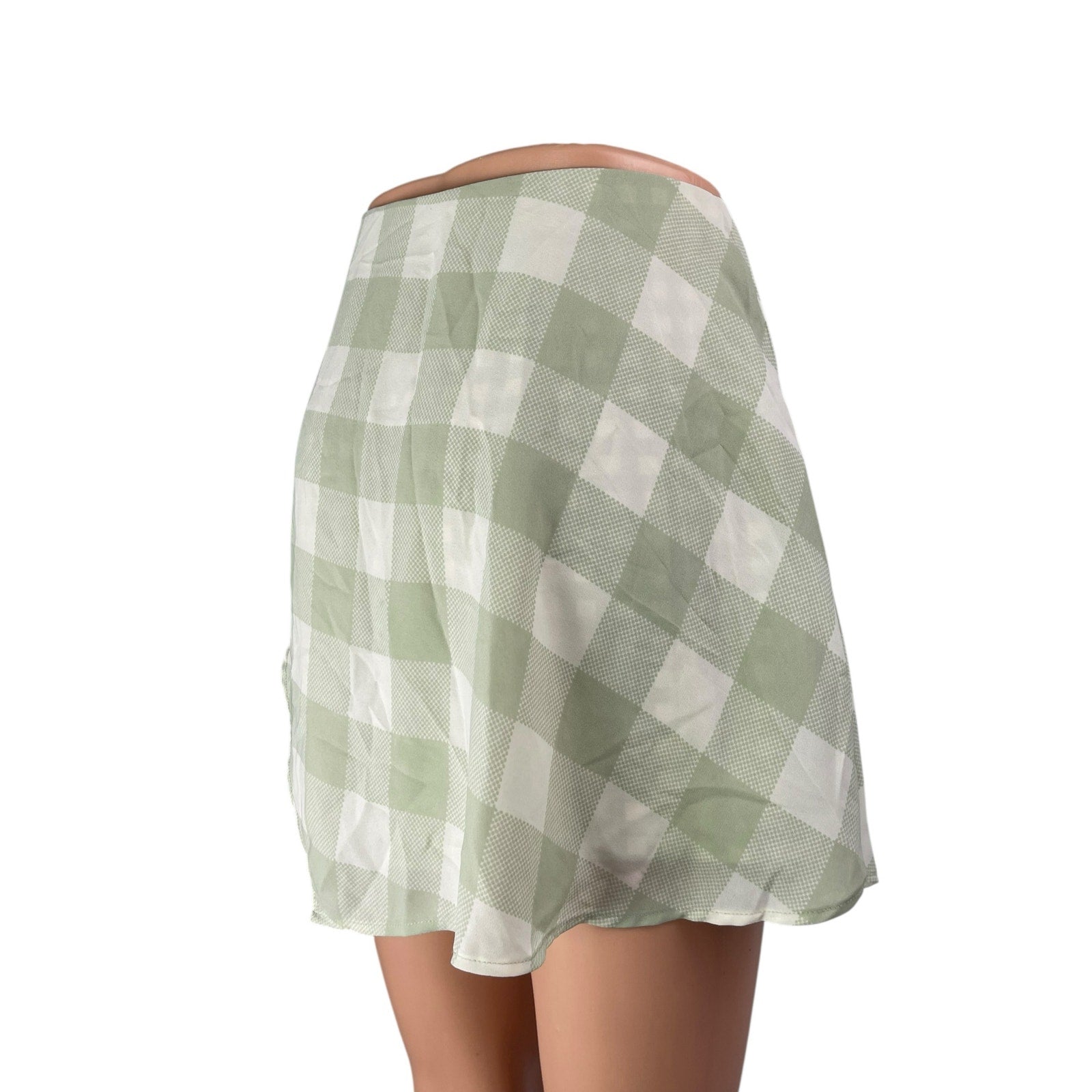 Urban Outfitters Green Gingham Check Asymmetric A-Line Mini Skort Skirt Size 6