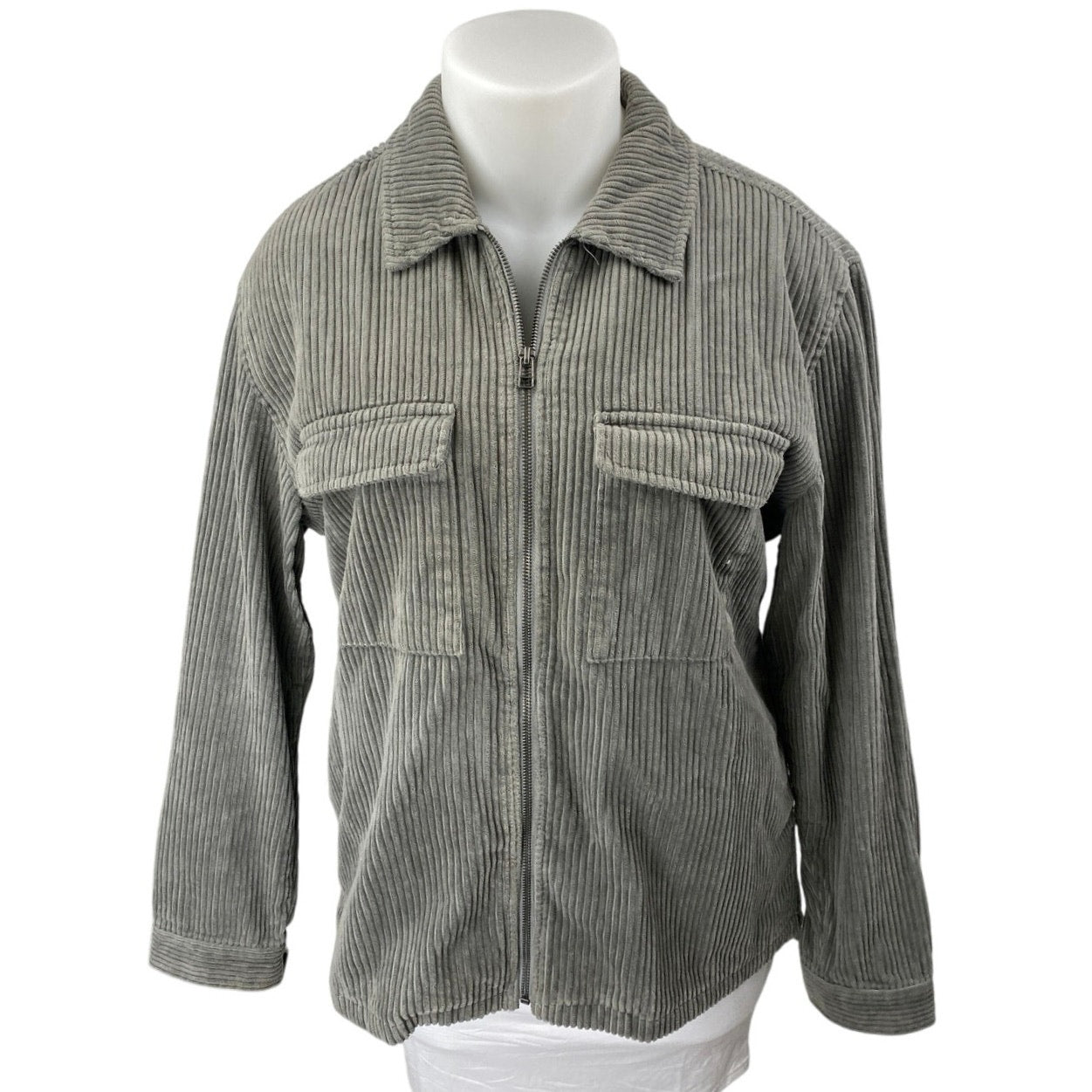 Urban Outfitters Ryder Men's Gray Corduroy Zip Up Long Sleeve Shirt Jacket Top L