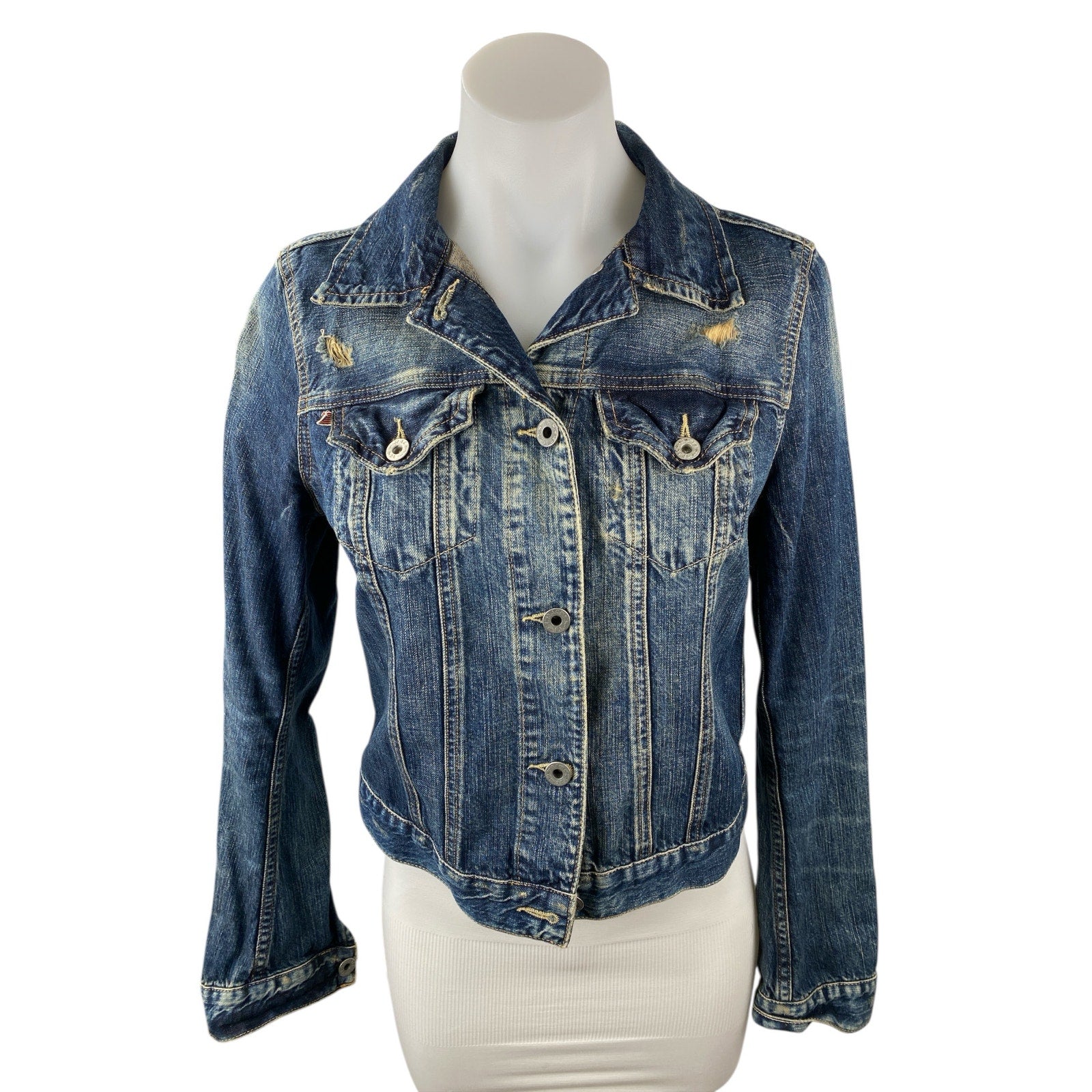 USRL Women's Blue Long Sleeve Button Down Trucker Denim Jean Jacket Size S
