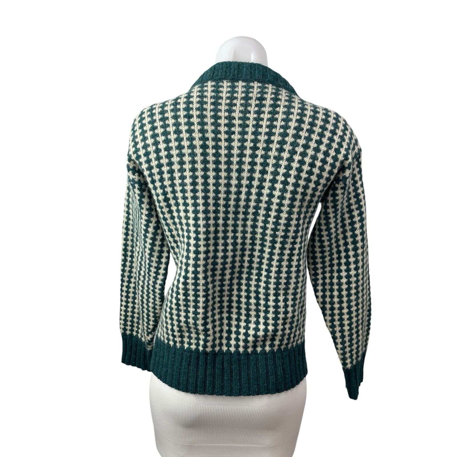 Van Heusen Editions 100% Wool Green V Neck Button Down Cardigan Sweater Top Sz S