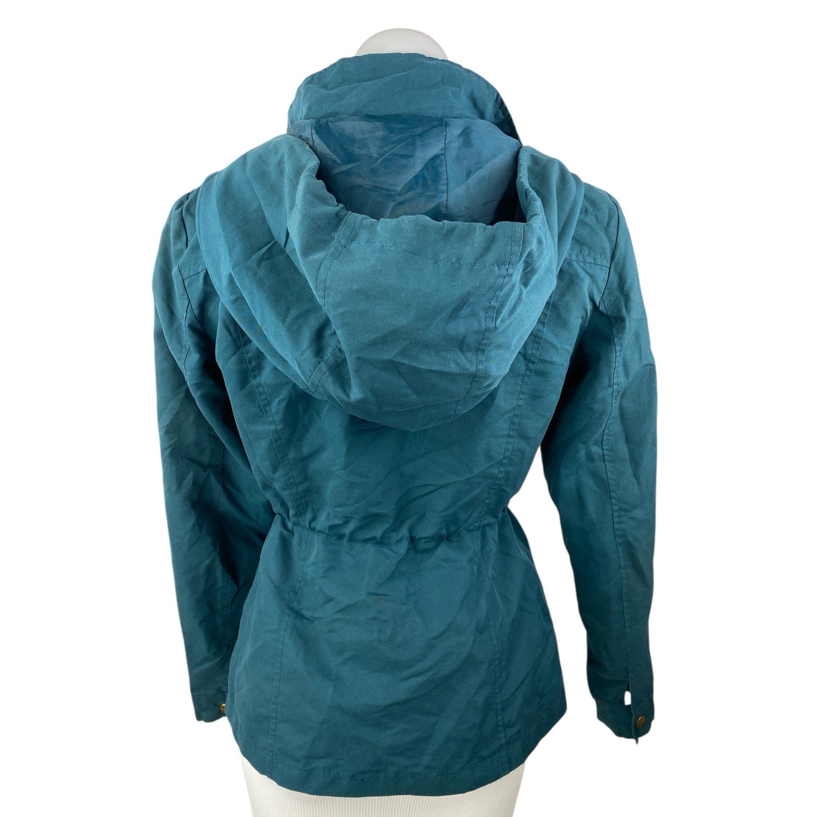 Vero Moda Blue Green Hooded Long Sleeve Snap Utility Anorak Coat Jacket Size XS