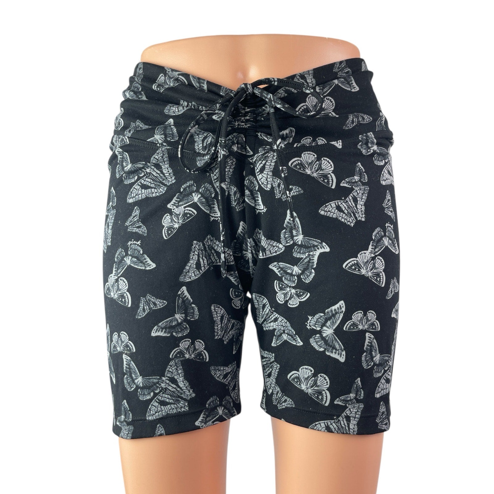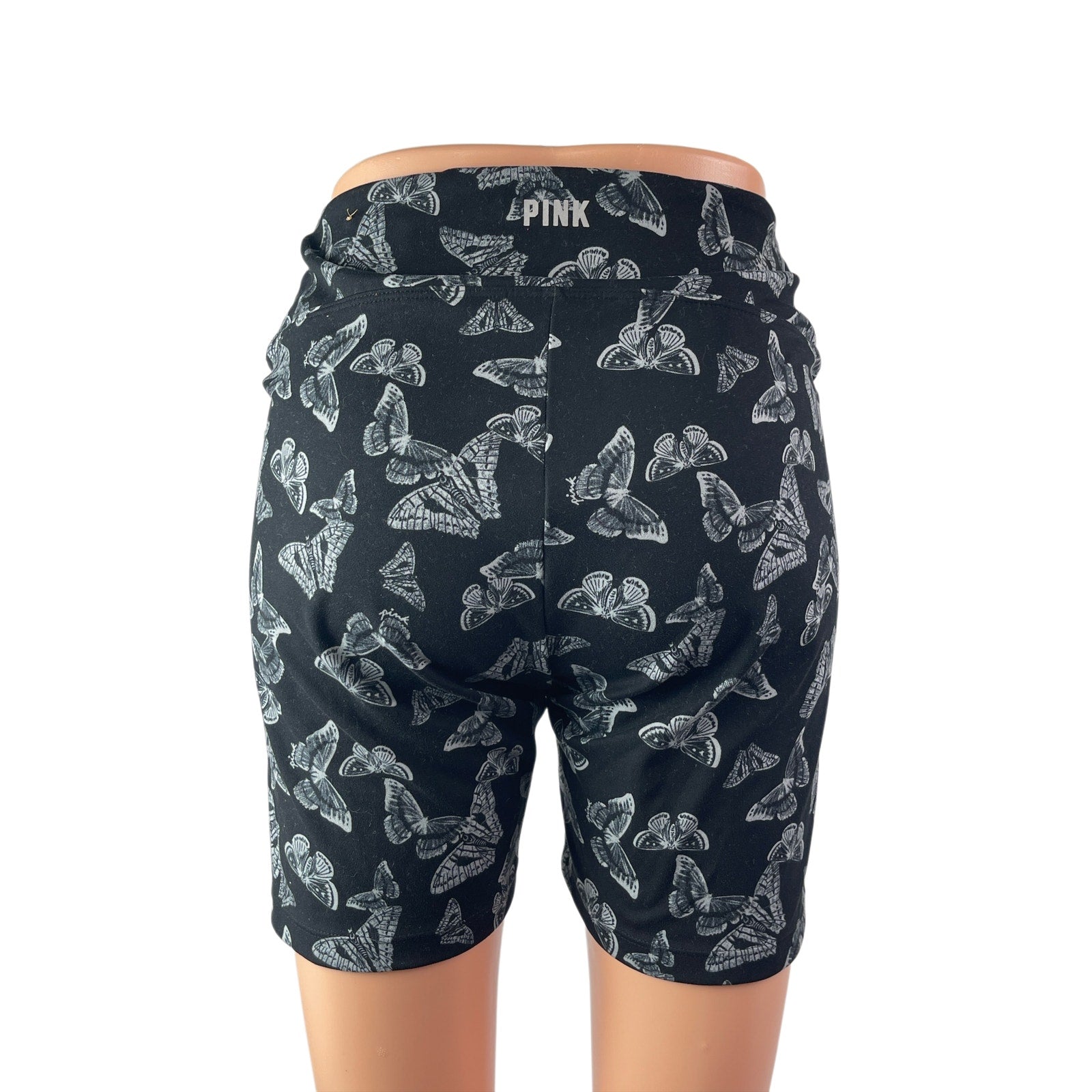 Victoria Secret Pink Active Black Butterfly Ruched Activewear Biker Shorts Sz M