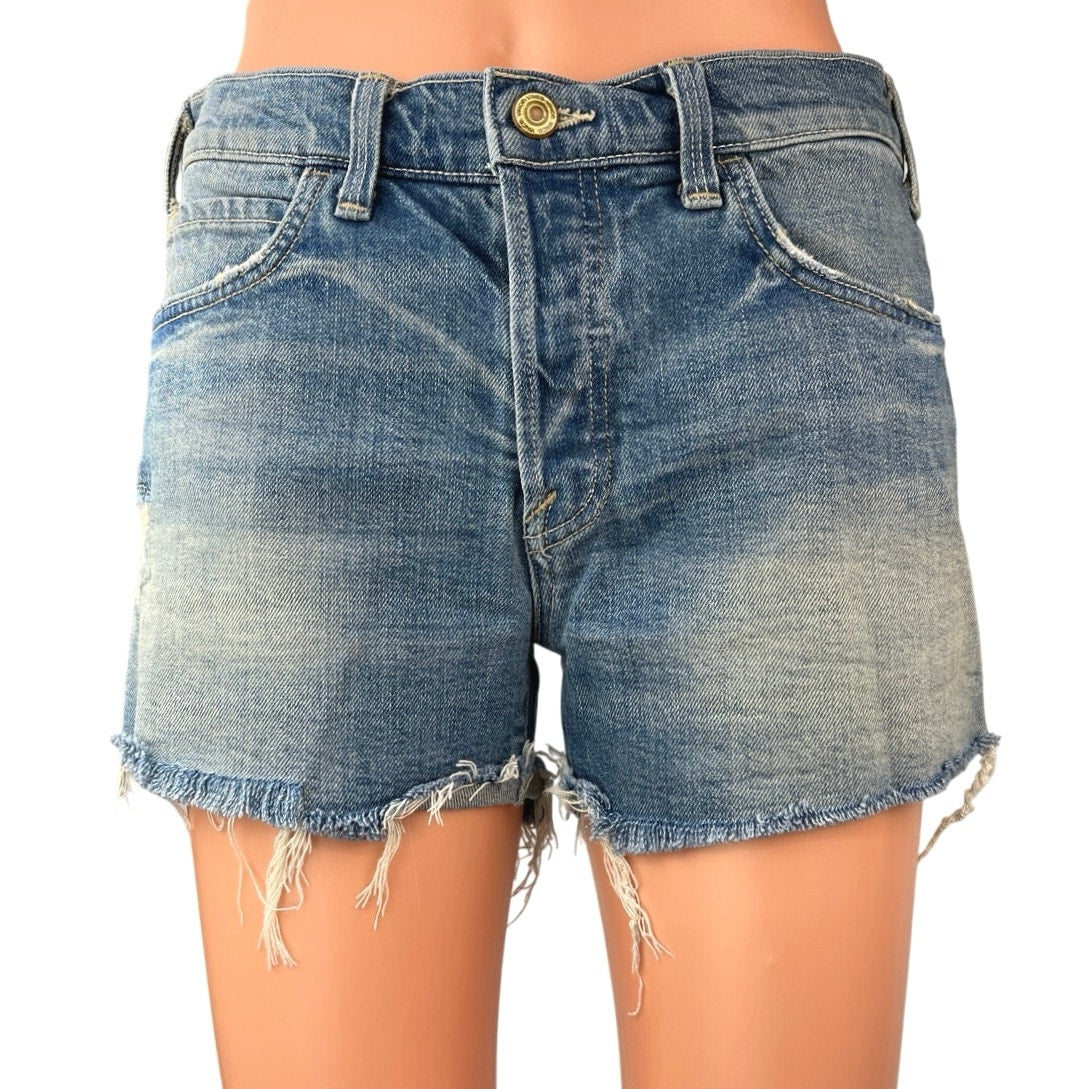 Vince Blue Distressed Mid Rise Medium Wash Raw Hem Cut Off Denim Jeans Shorts 27