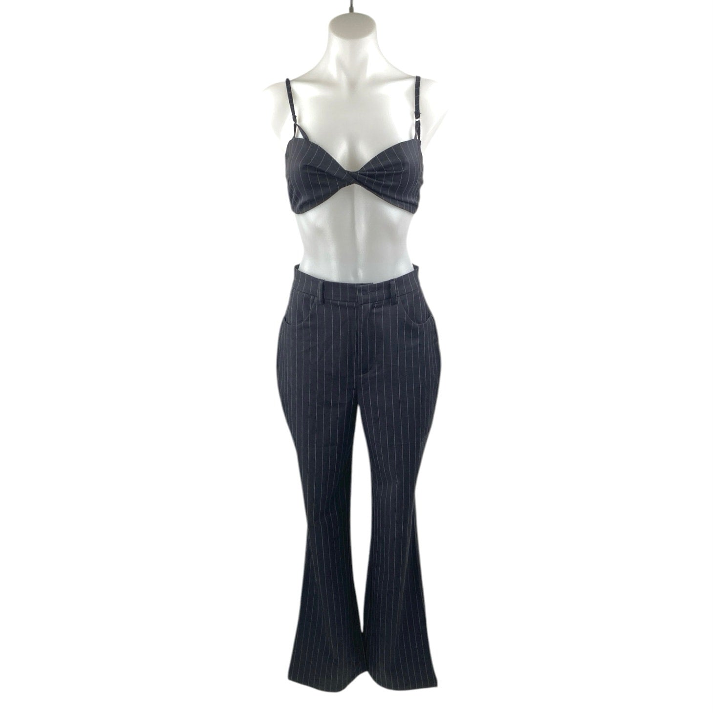 White Fox Black Pinstriped 2-Piece Crop Top & Bootcut Trousers Pants Set Size XS