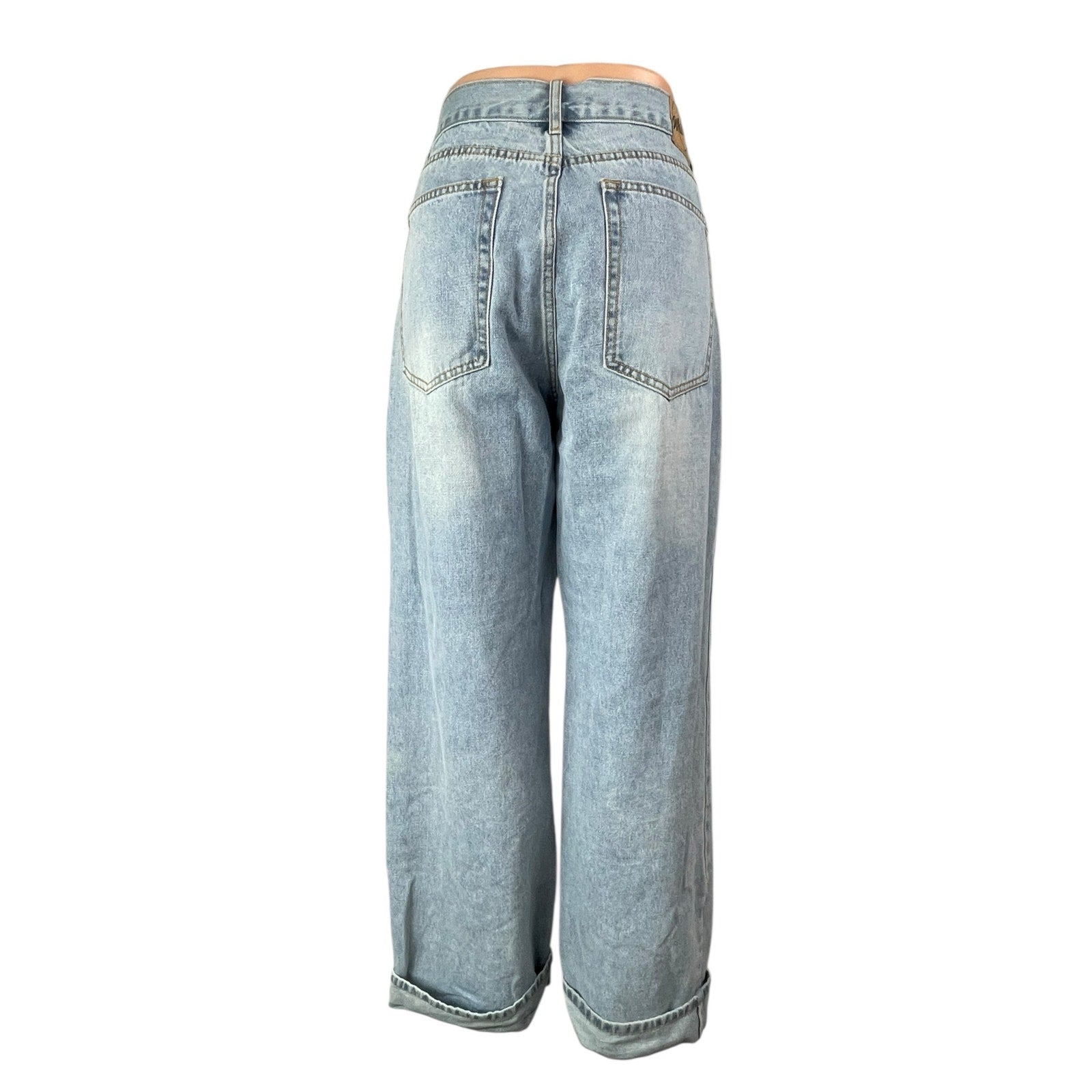 White Fox Women's Blue Light Wash Wide Leg Baggy Loose Fit Denim Jeans Size M