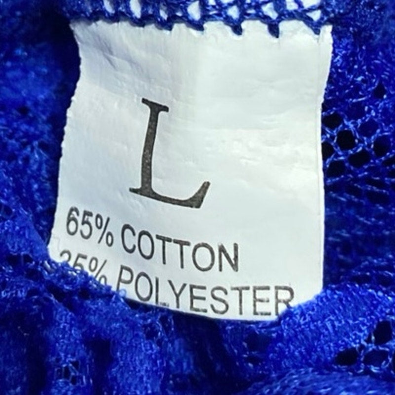 Women's Blue Floral Lace Plunge Neck Chiffon Sheer 2-Piece Lingerie Matching Set L