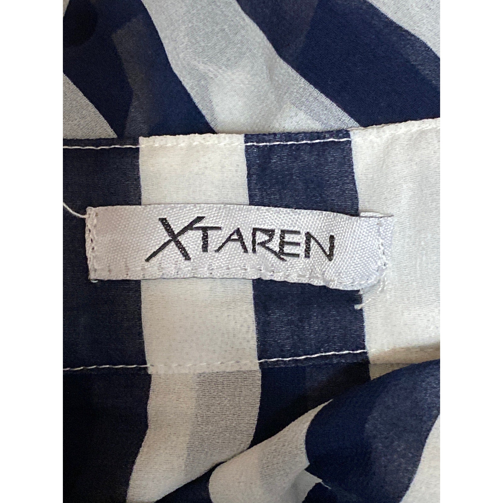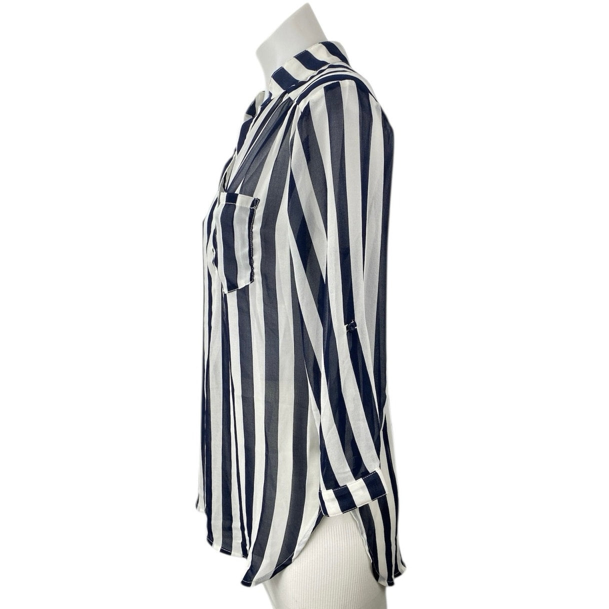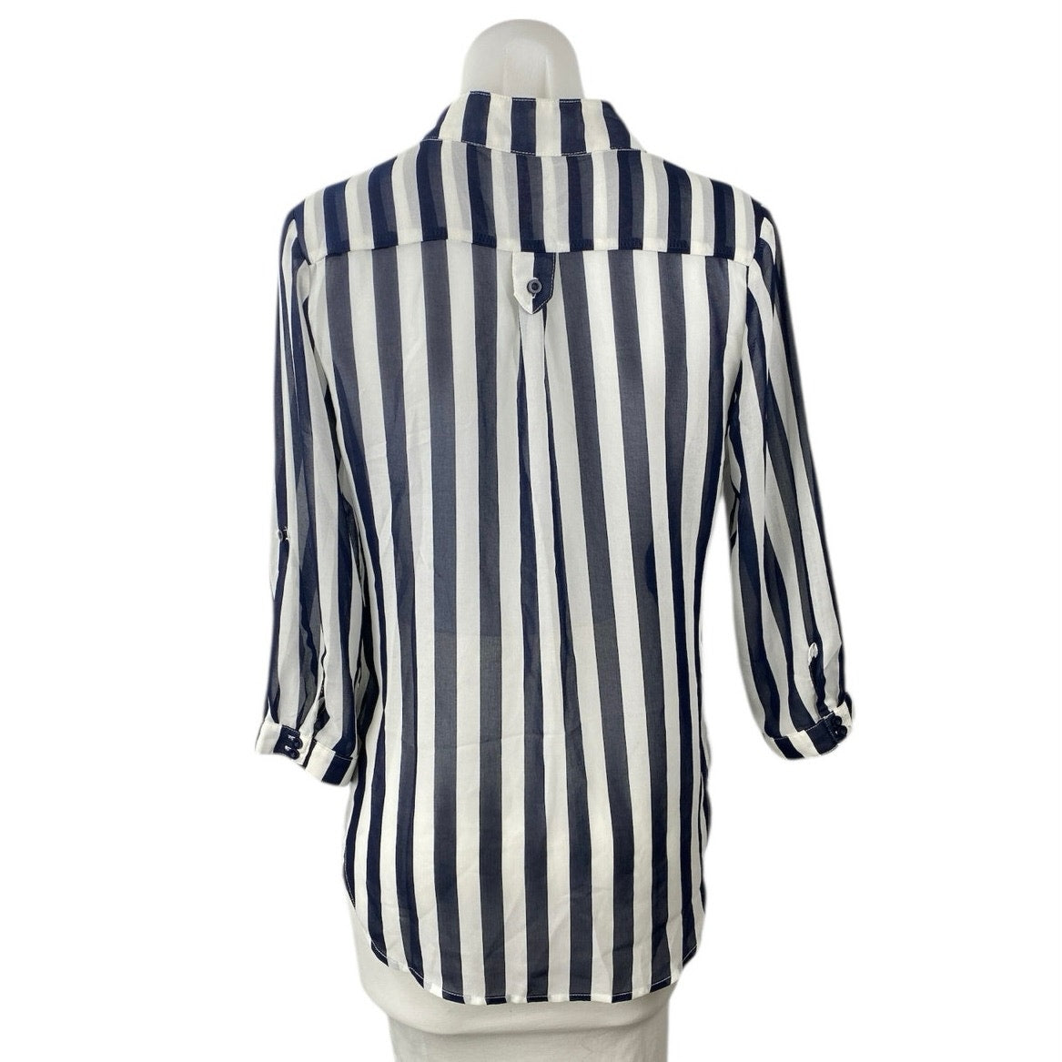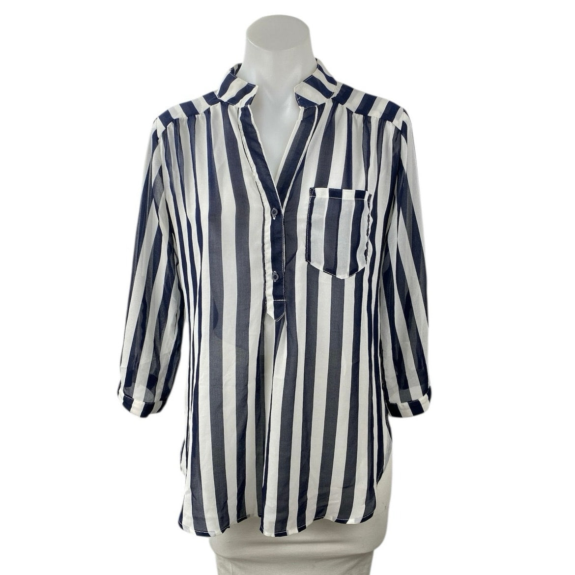 Xtaren Women's Blue White Striped 3/4 Sleeve Pocket Blouse Shirt Tunic Top Size M