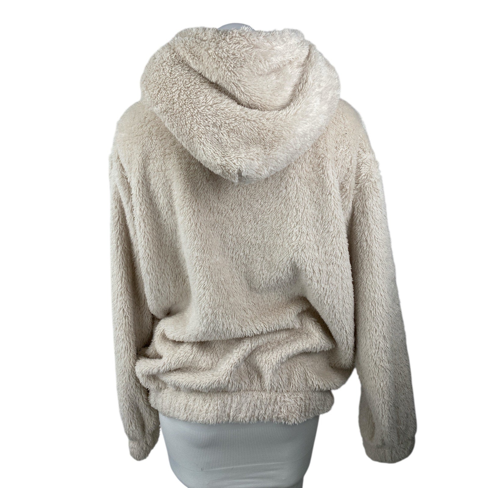 Zaful Women's Beige Faux Fur Teddy Fuzzy Hoodie Hooded Sweater Sweatshirt Top S