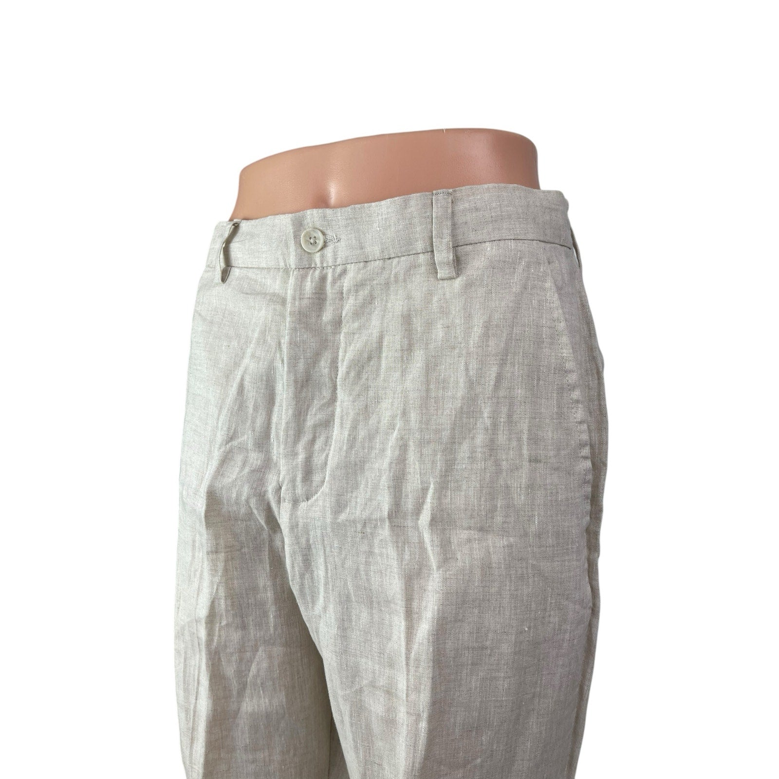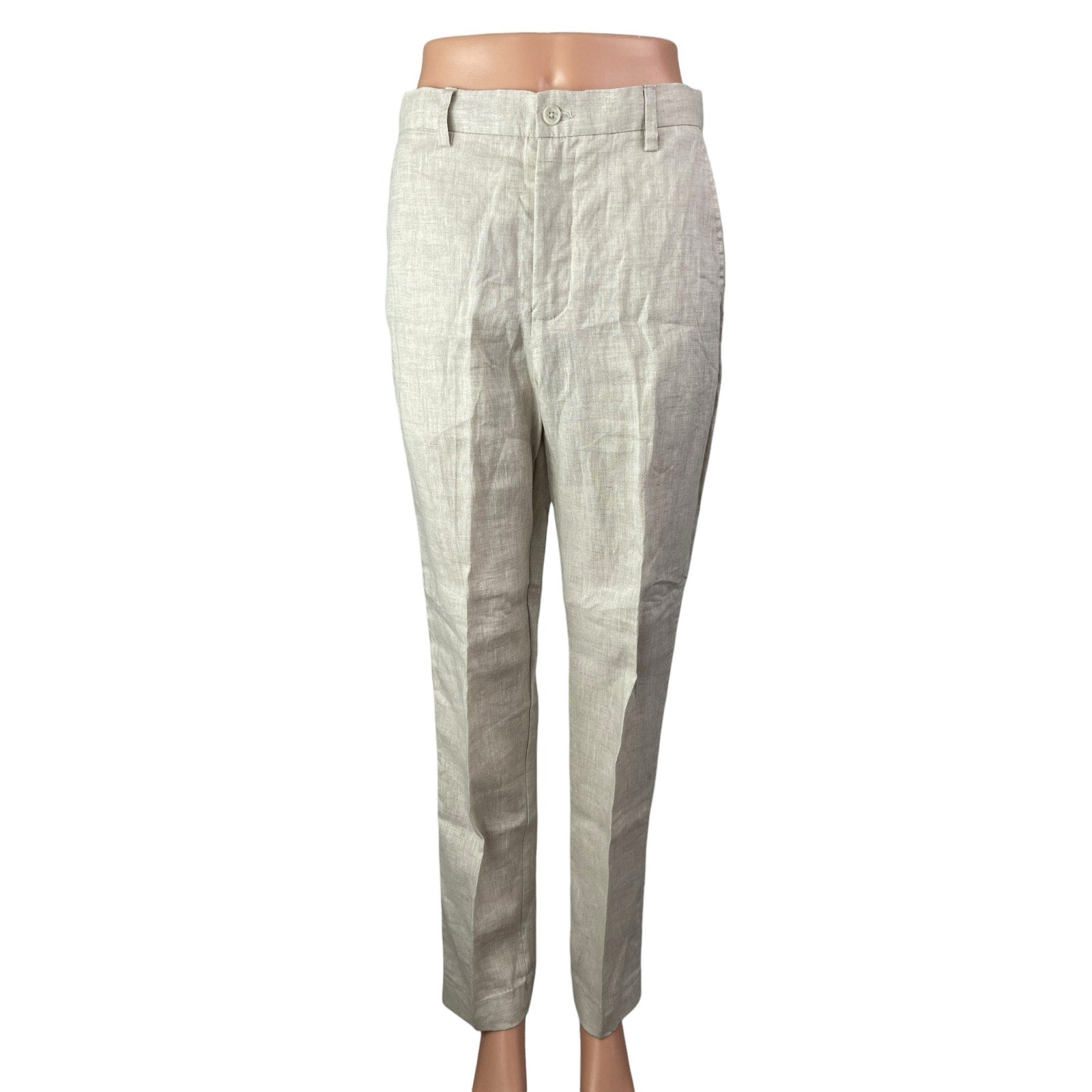 Zara 100% Linen Women's Beige High Rise Straight Chino Trousers Dress Pants Sz S