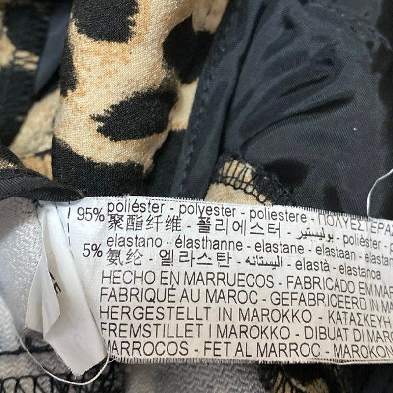 Zara Beige Black Leopard Animal Print High Rise Flare Bootcut Trousers Pants XS