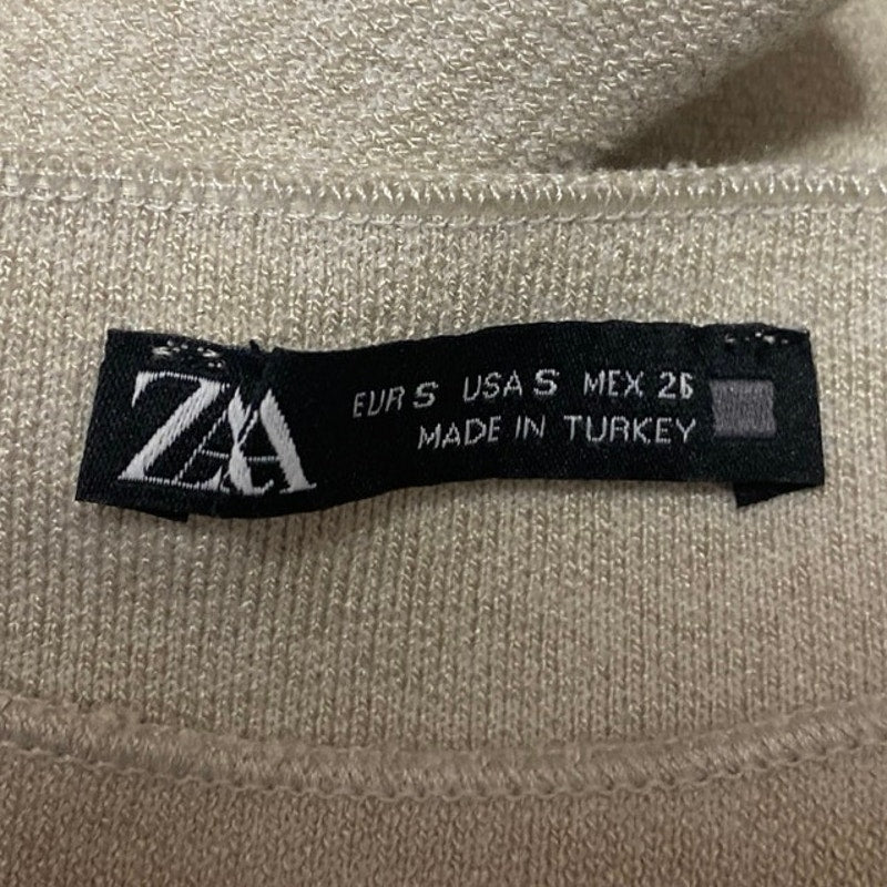 Zara Beige Cream Short Sleeve Mock Neck Knit Sweater Mini Bodycon Dress Size S