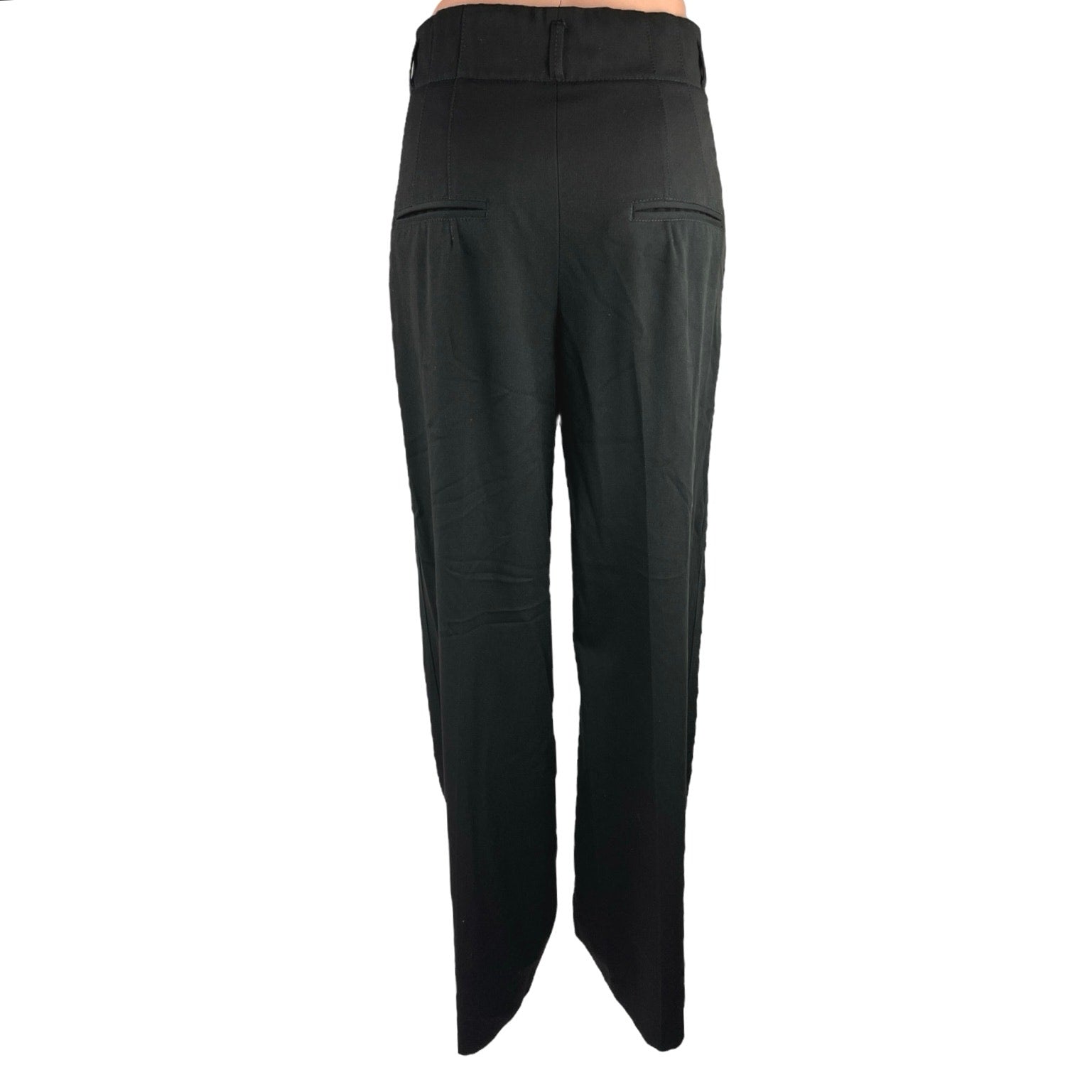 Zara Black High Rise Flat Front Straight Leg Ankle Trouser Dress Pants Size S