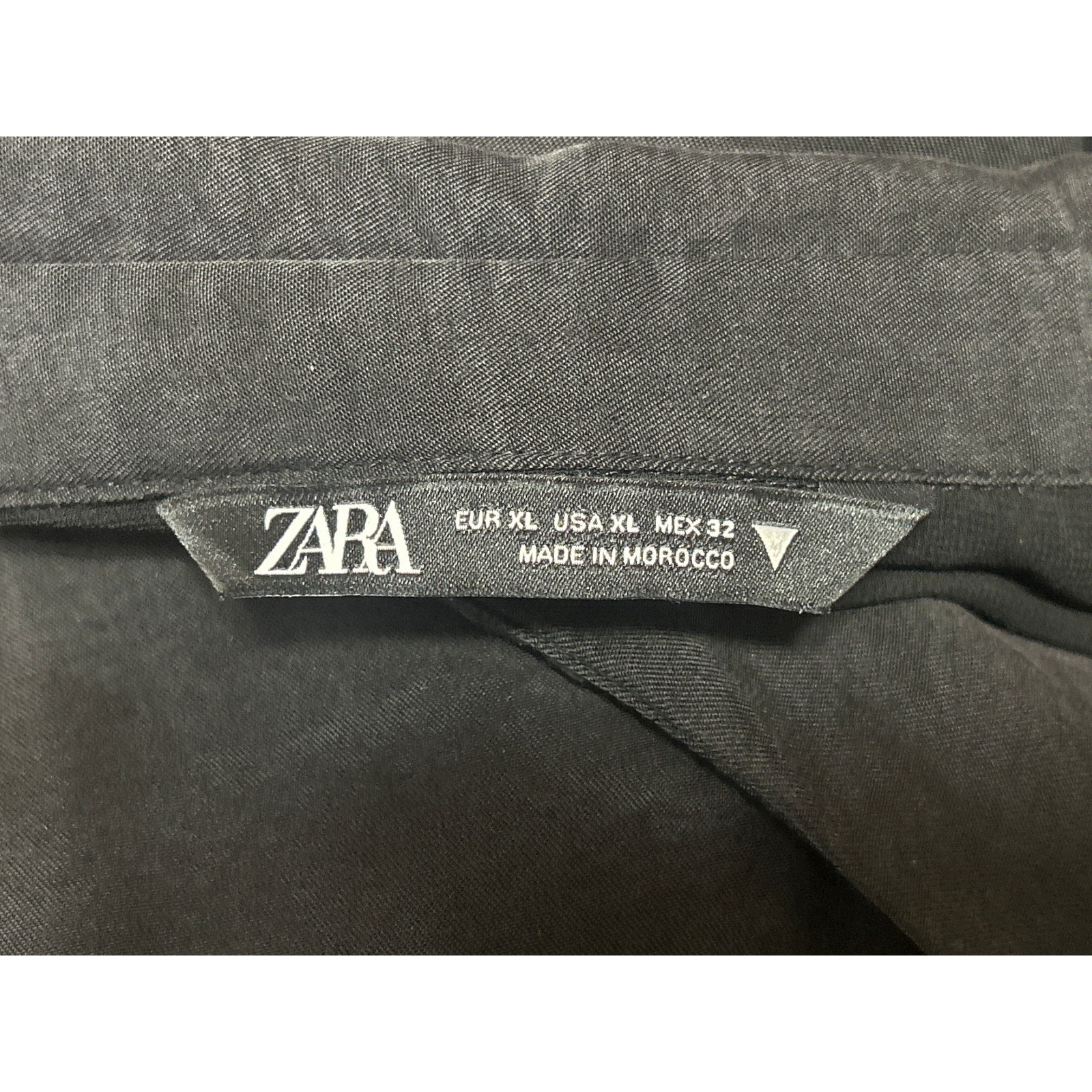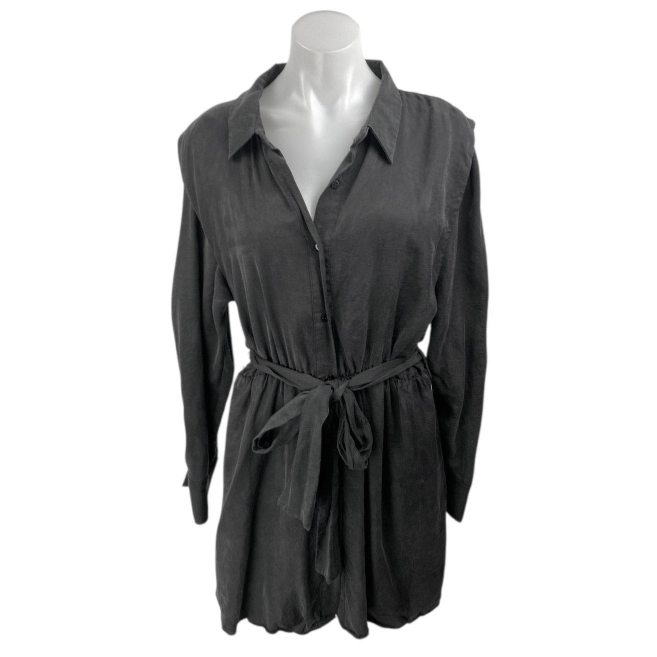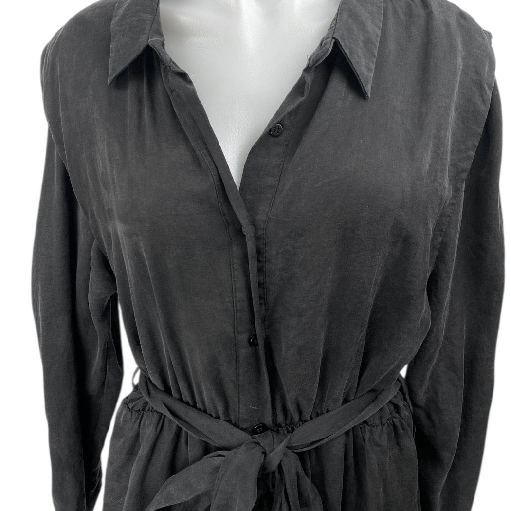Zara Black Long Sleeve Tie Waist Collared Button Down Mini Shirt Dress Size XL