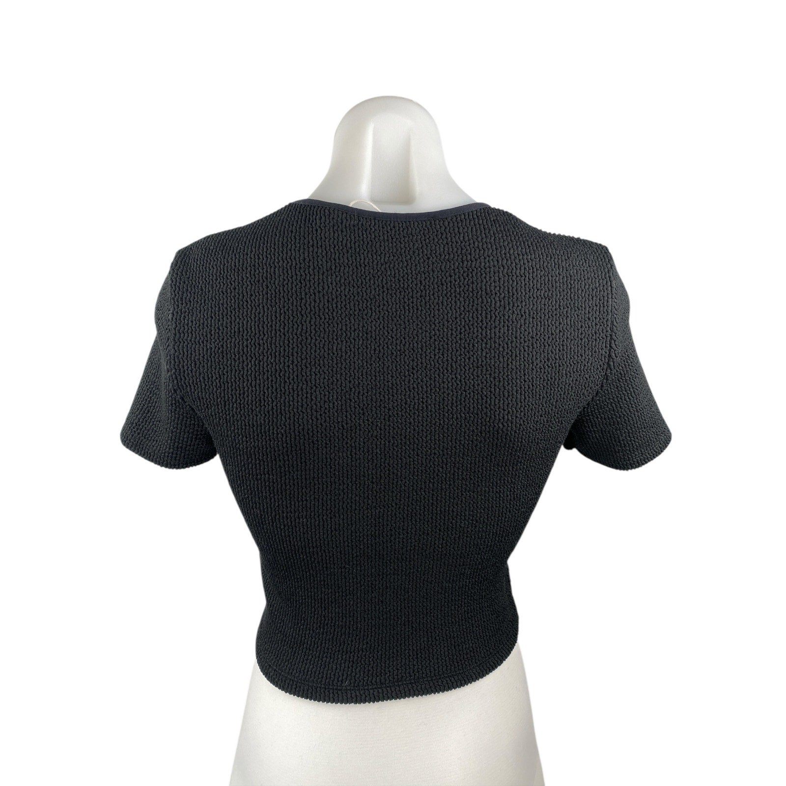 Zara Black Ribbed Knit Crew Neck Short Sleeve Crop Baby Tee Basic T-Shirt Top M