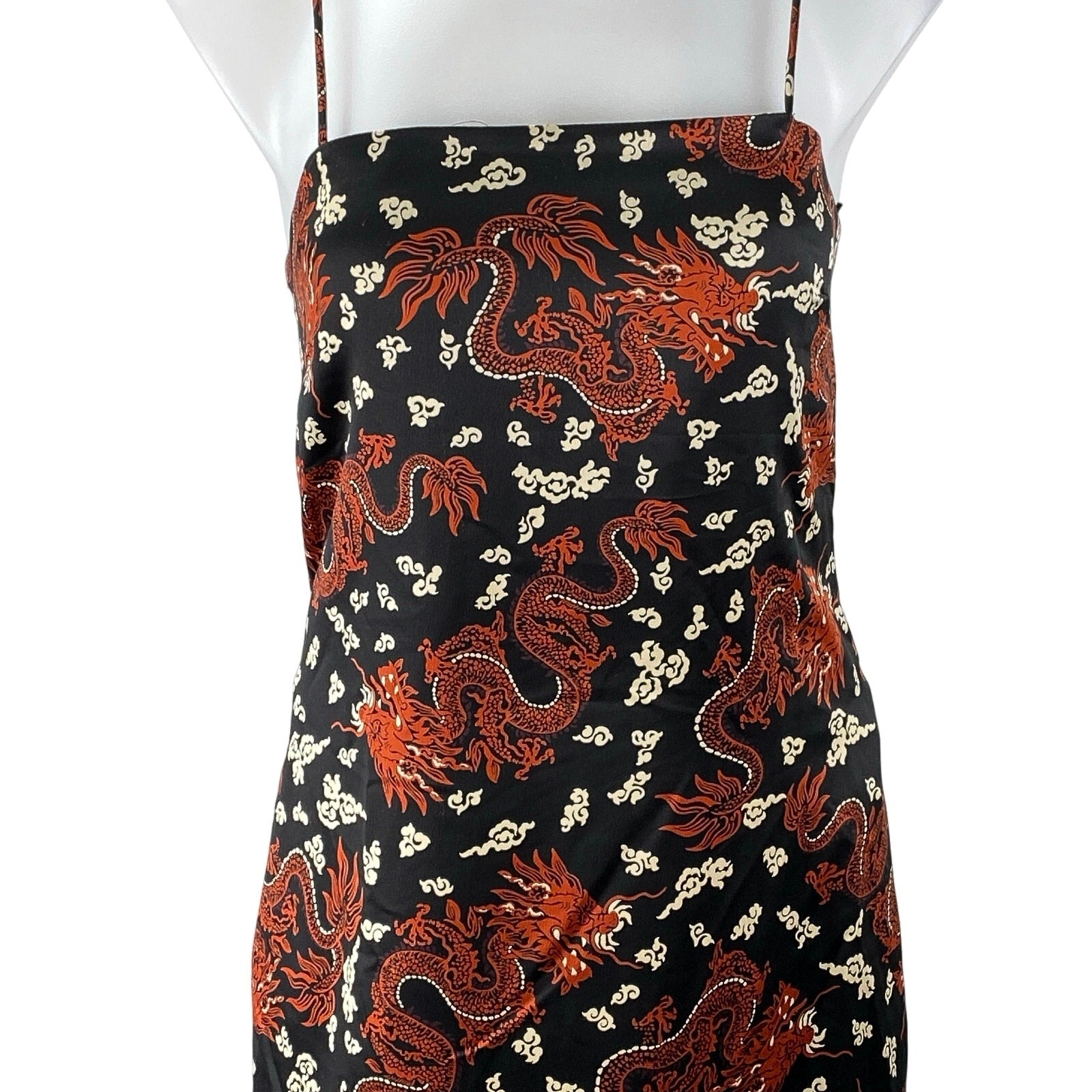 Zara Black Silk Satin Dragon Sleeveless Cami Camisole Tank Mini Slip Dress Sz XS