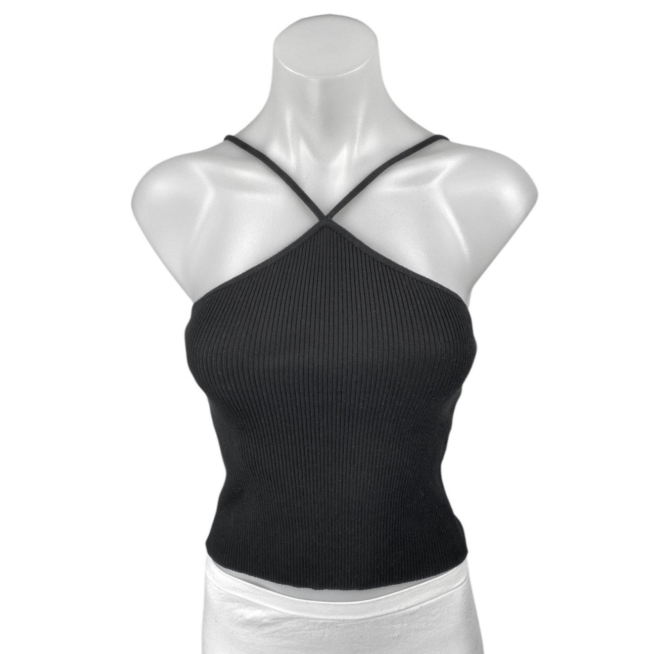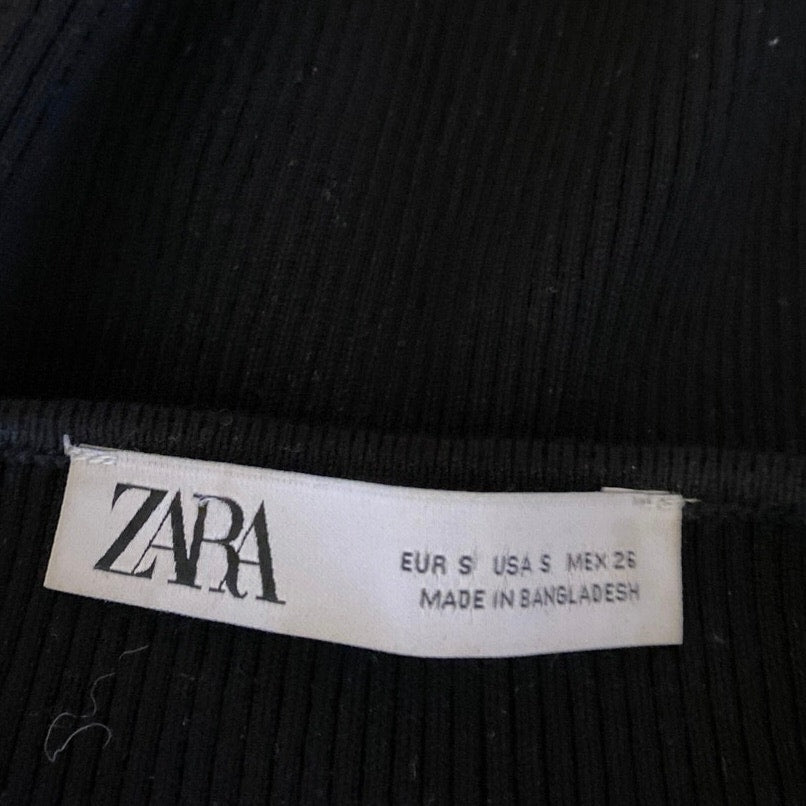 Zara Black Sleeveless Cross Strap Cami Camisole Tank Ribbed Knit Crop Top Size S