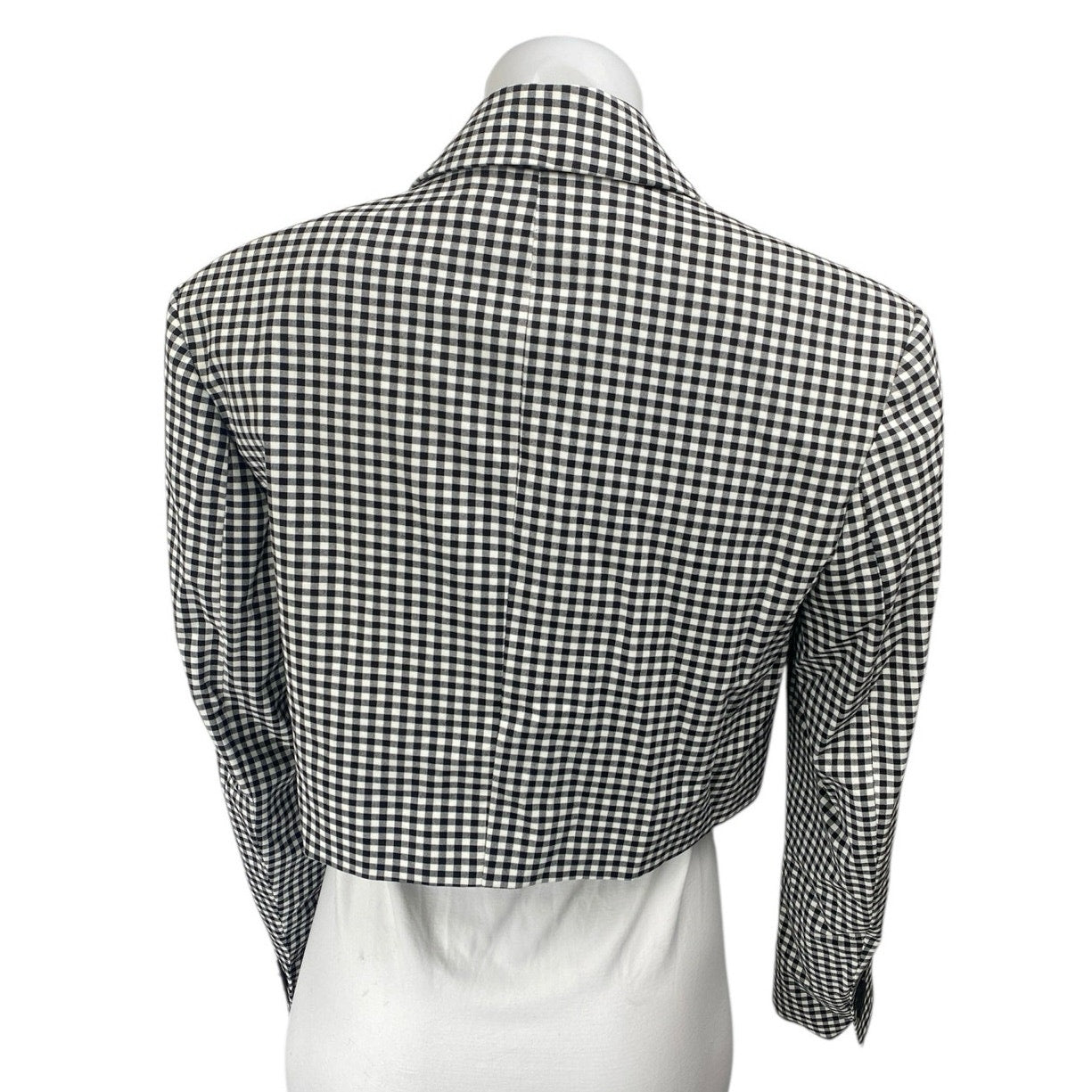 Zara Black White Gingham Check Open Long Sleeve Crop Blazer Suit Jacket Size XS