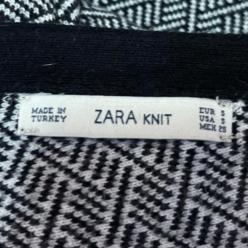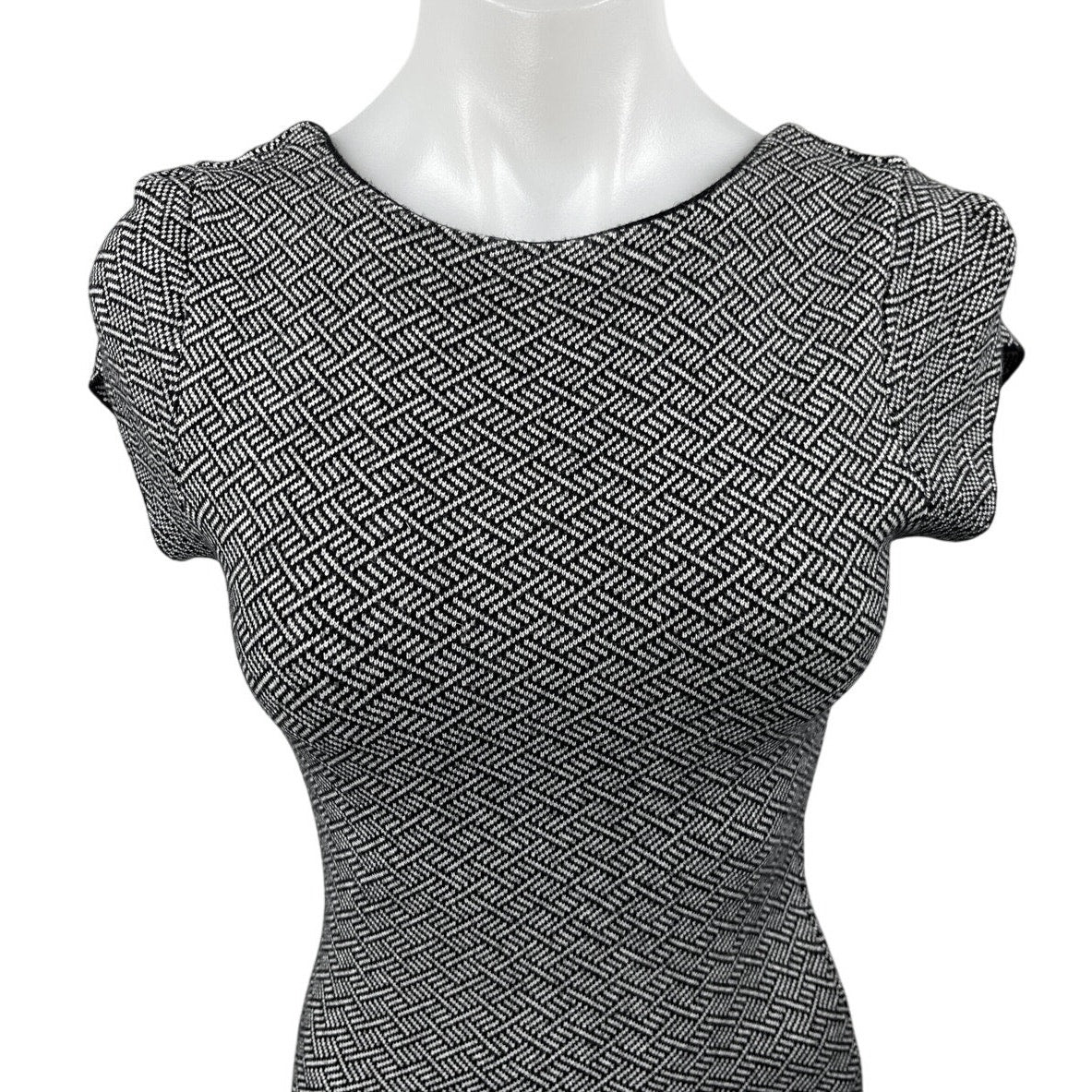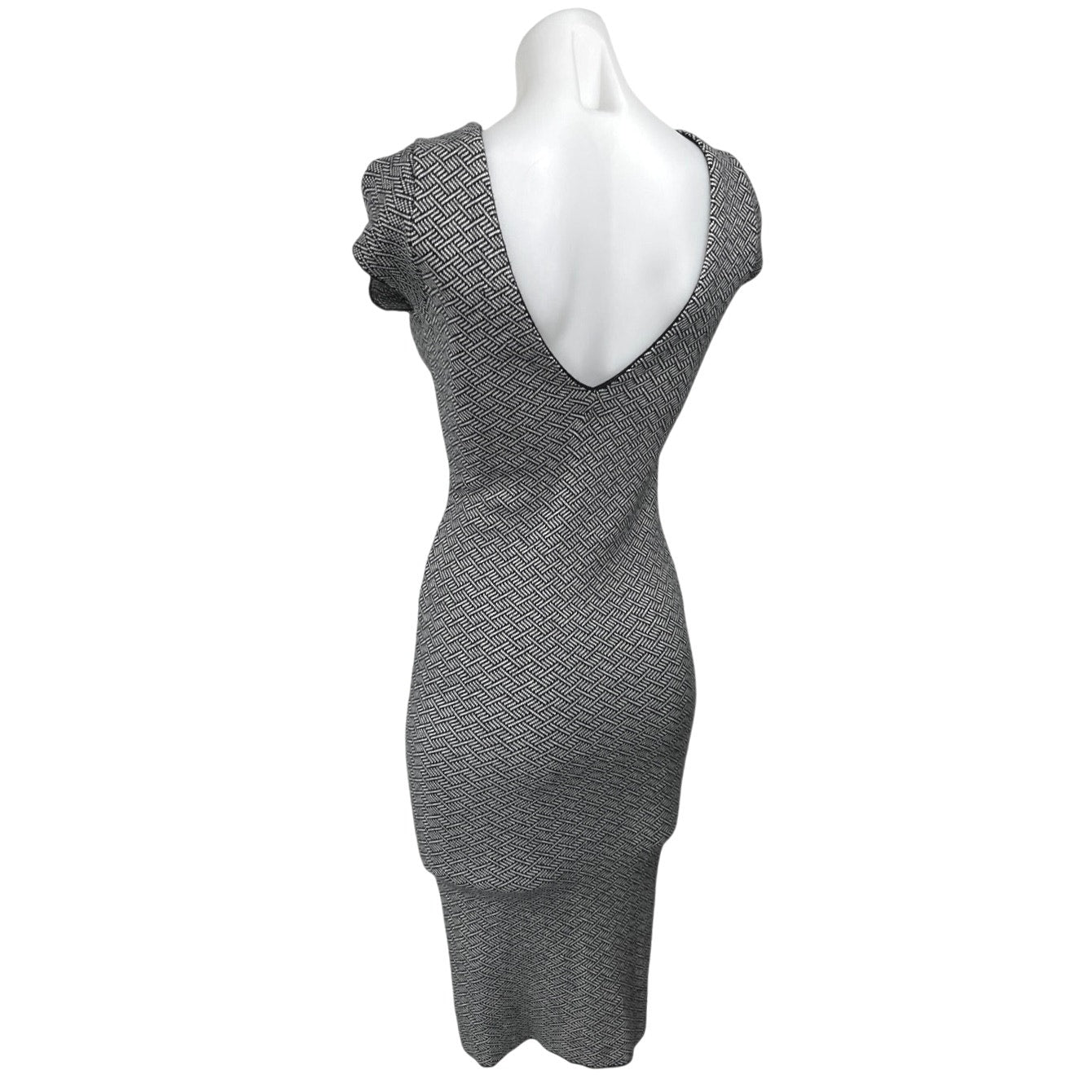 Zara Black White Short Sleeve Geometric Open Back Midi Bodycon Dress Size S