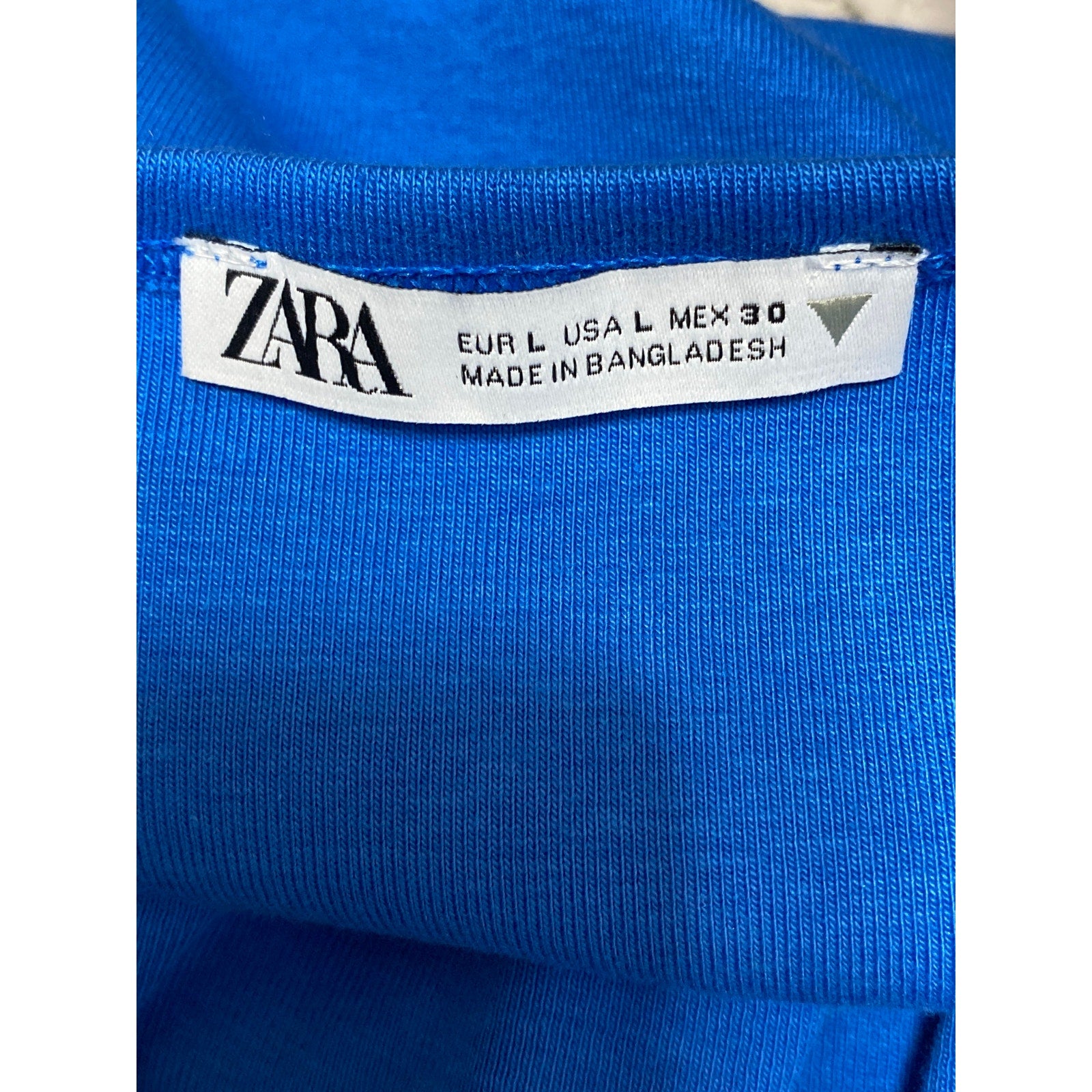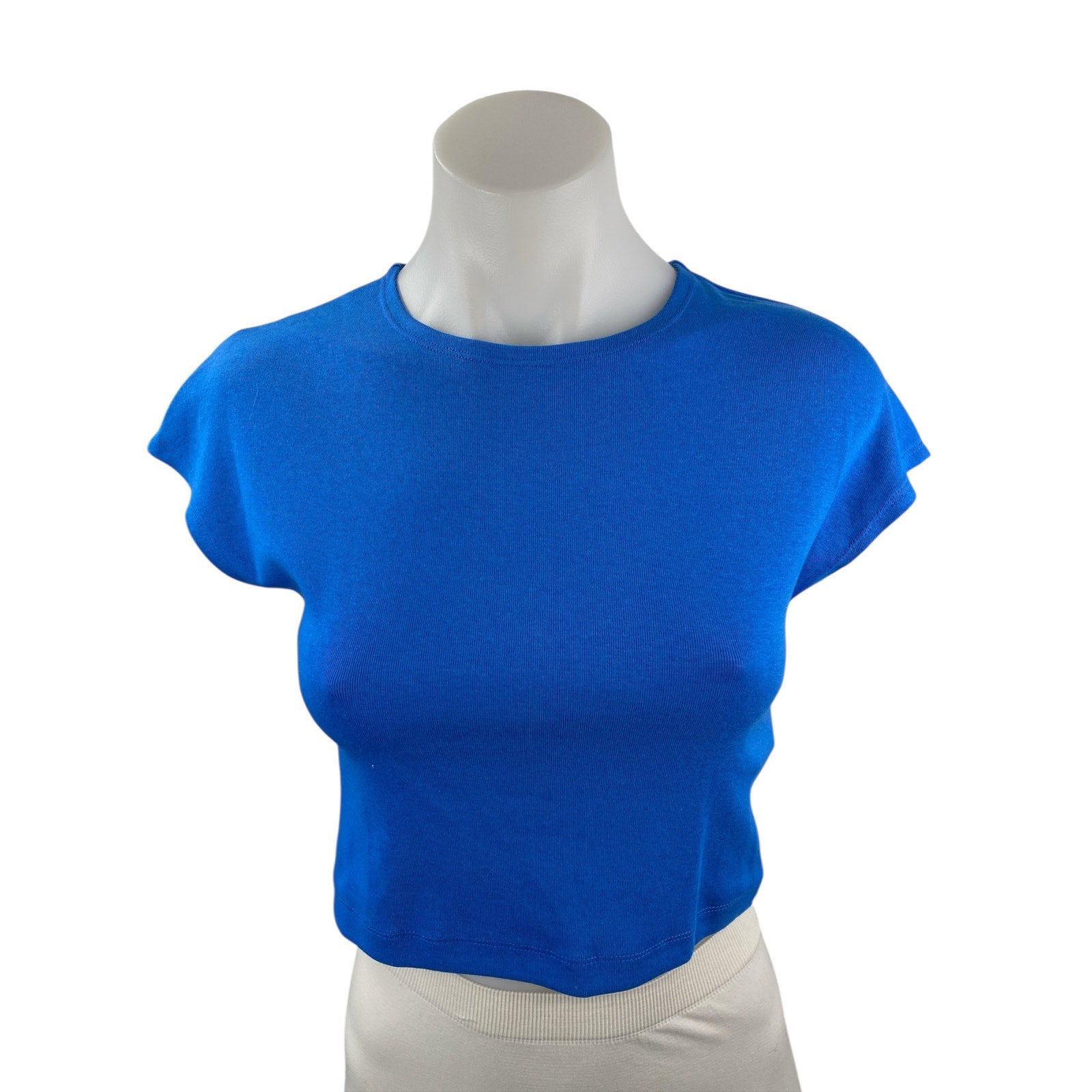 Zara Blue Crew Neck Short Sleeve Slim Fit Crop Baby Tee Basic T-Shirt Top Size L