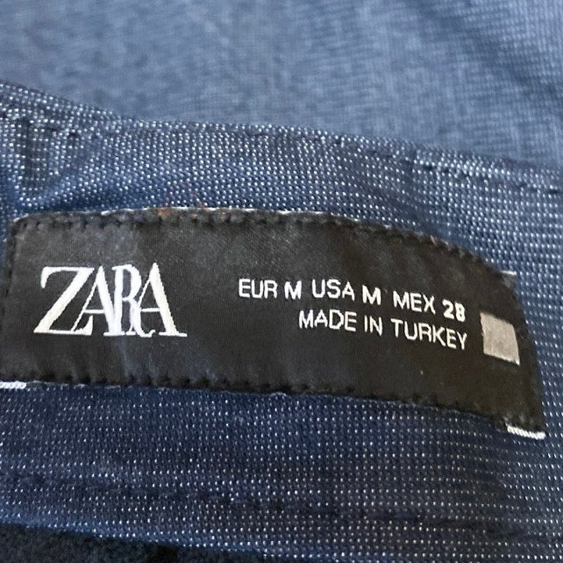 Zara Blue High Waisted Front Slit Zip Mini Straight Pencil Denim Skirt Skort M
