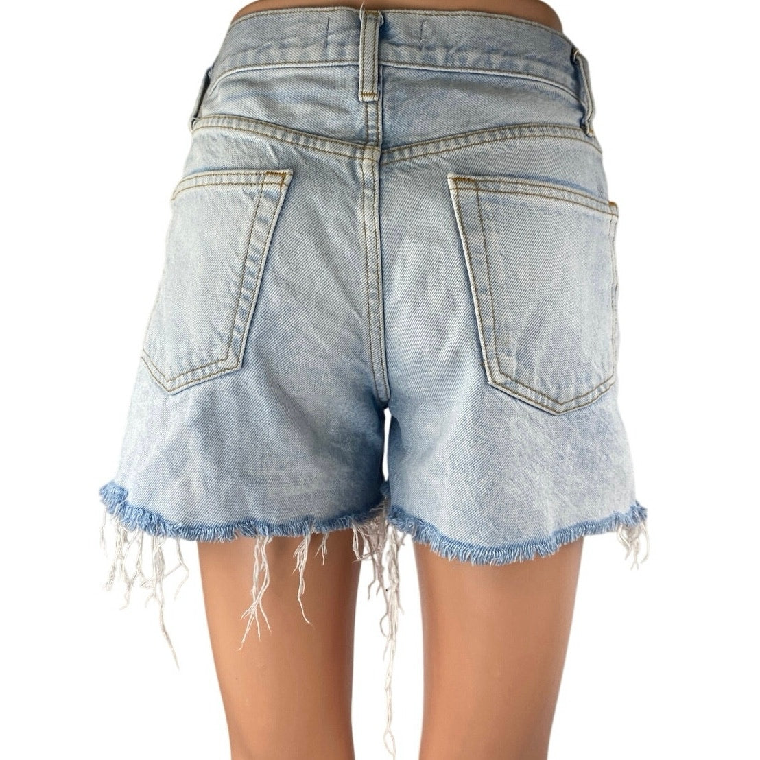 Zara Blue Light Wash High Rise Raw Hem Frayed Cut Off Denim Jean Shorts Size 2