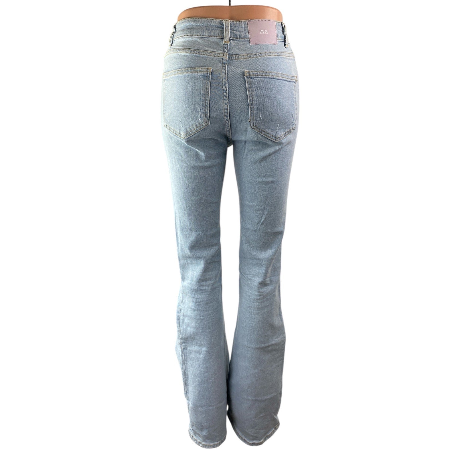 Zara Blue Light Wash High Waisted Button Fly Flared Bootcut Denim Jeans Pants 4
