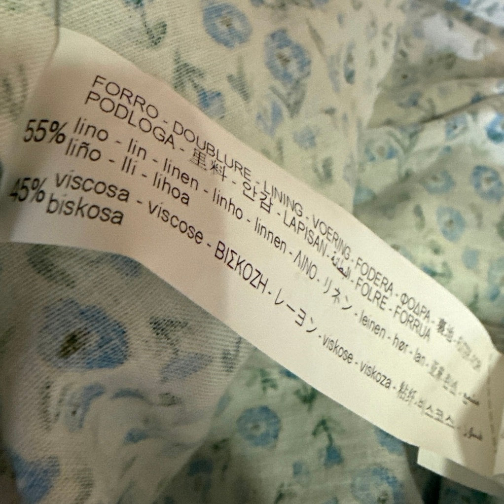 Zara Blue Linen Floral Sleeveless Smocked Mini Cami Camisole Tank Dress Size M