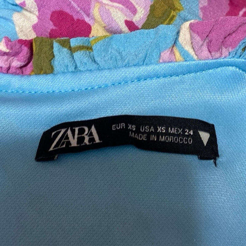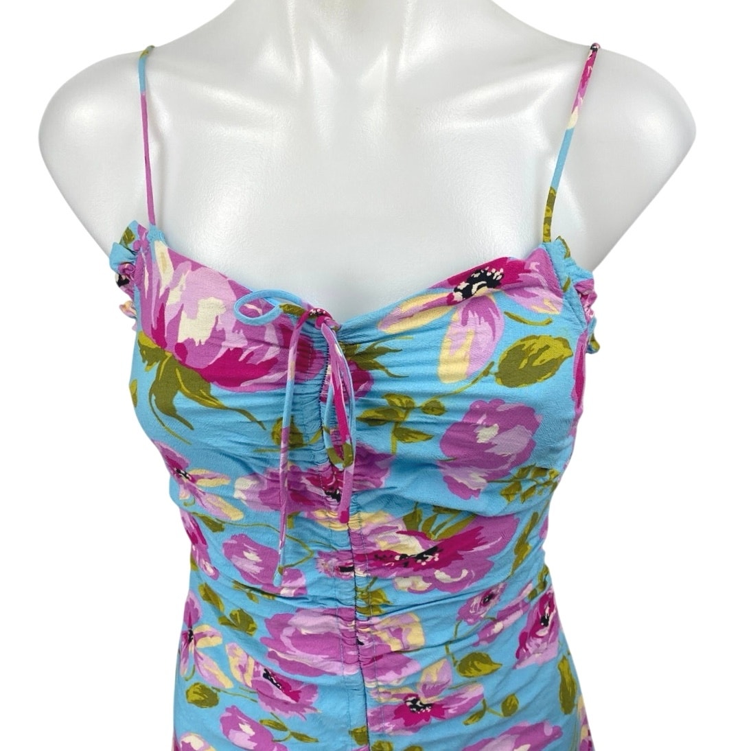 Zara Blue Pink Floral Sleeveless Ruched Cami Camisole Tank Mini Bodycon Dress XS